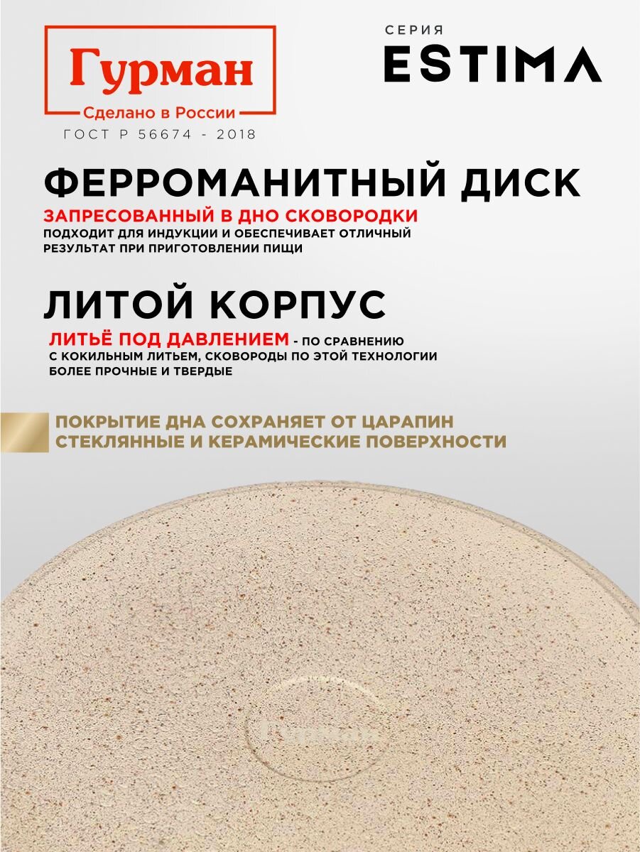 Вы можете приобрести «Сковорода литой алюминий, 20 см, антипригарное покрытие, Гурман, Estima, бежевая, индукция, ГМ2001 ЭБИ» и другие товары в нашем интернет-магазине в Борисоглебске по низким ценам и с бесплатным самовывозом.