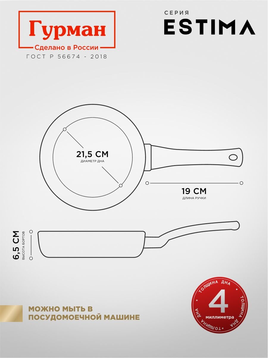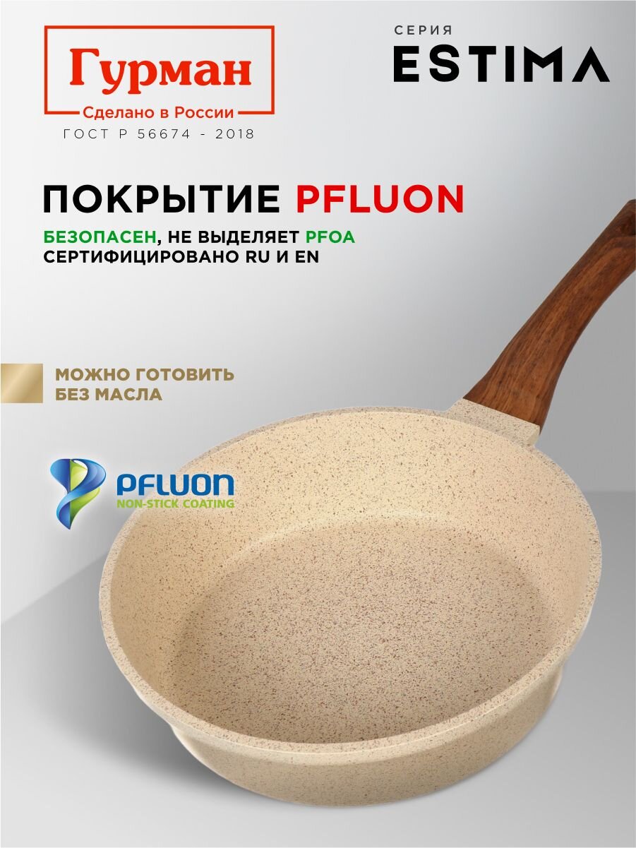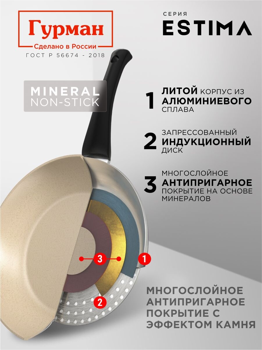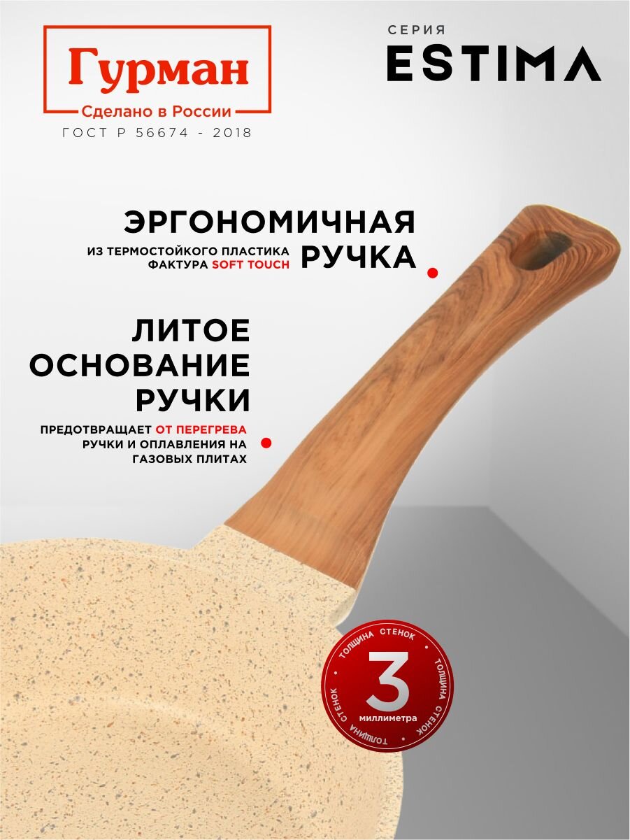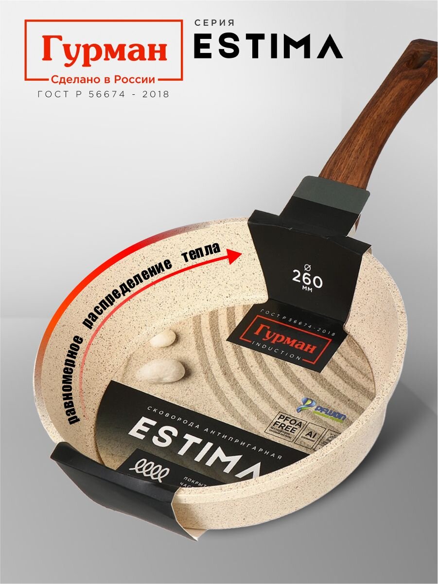 Вы можете приобрести «Сковорода литой алюминий, 26 см, антипригарное покрытие, Гурман, Estima, бежевая, индукция, ГМ2601 ЭБИ» и другие товары в нашем интернет-магазине в Обнинске по низким ценам и с бесплатным самовывозом.
