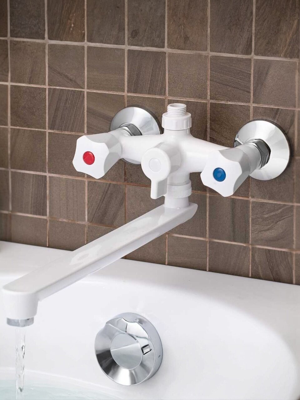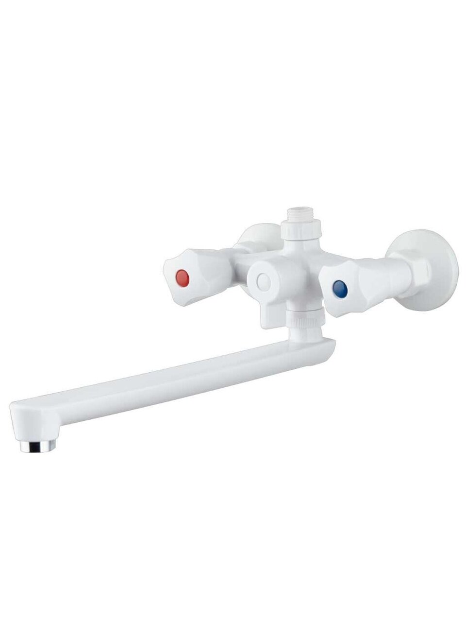 Смеситель для ванны РМС PL4-140P — это оптимальный выбор, если вы ищете недорогой и лёгкий в установке смеситель для дачи, квартиры или временного жилья. Корпус из ABS-пластика устойчив к влаге и не ржавеет, что особенно важно для эксплуатации в условиях повышенной влажности. Благодаря двухвентильному управлению и поворотному длинному изливу (30 см) вы сможете легко регулировать напор и температуру воды, а также удобно использовать смеситель для разных задач: от мытья до набора воды в хозяйственных целях.
