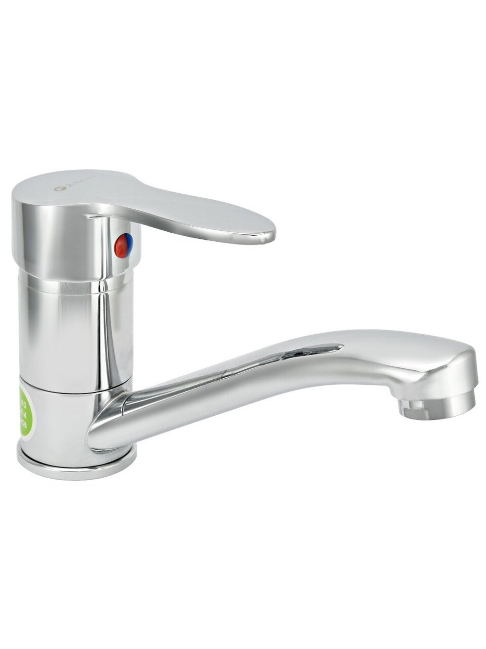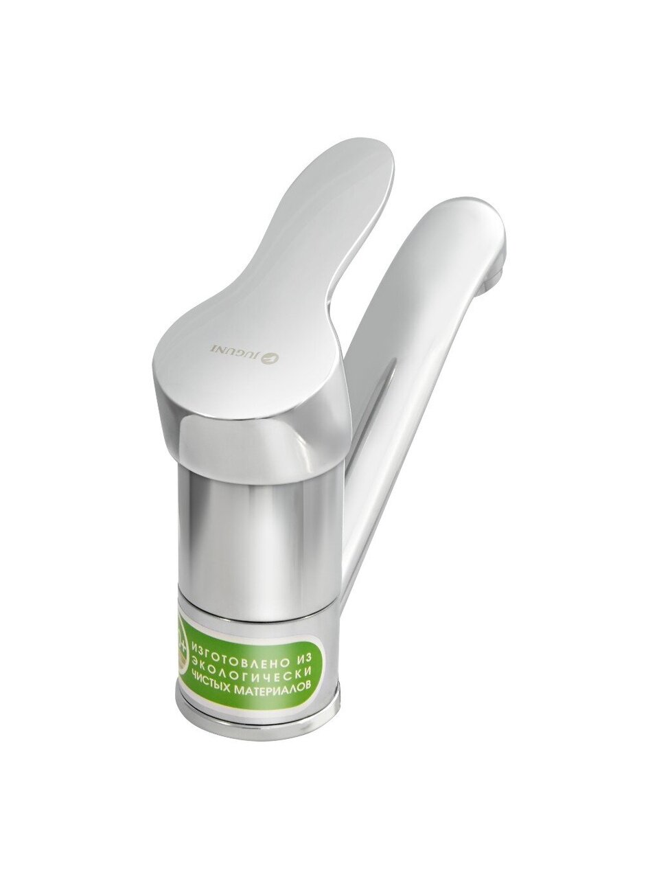 Смеситель для раковины Juguni 0402.603 — компактный поворотный кран с коротким изливом и керамическим картриджем для экономии пространства и воды.