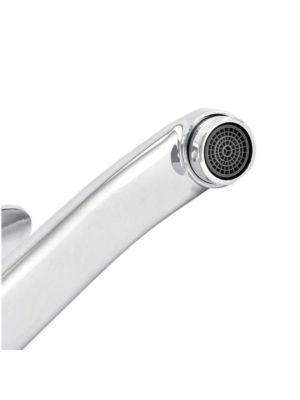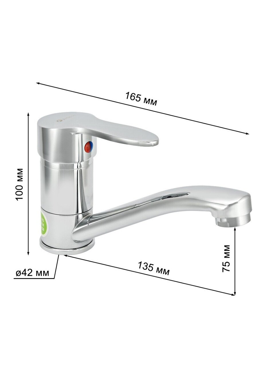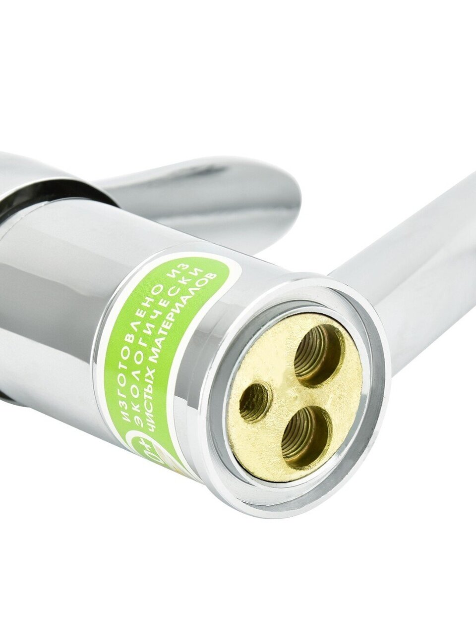 Короткий излив (13,5 см) удобен для небольших умывальников, снижает разбрызгивание и экономит место. Идеален для компактных санузлов и дачных условий.