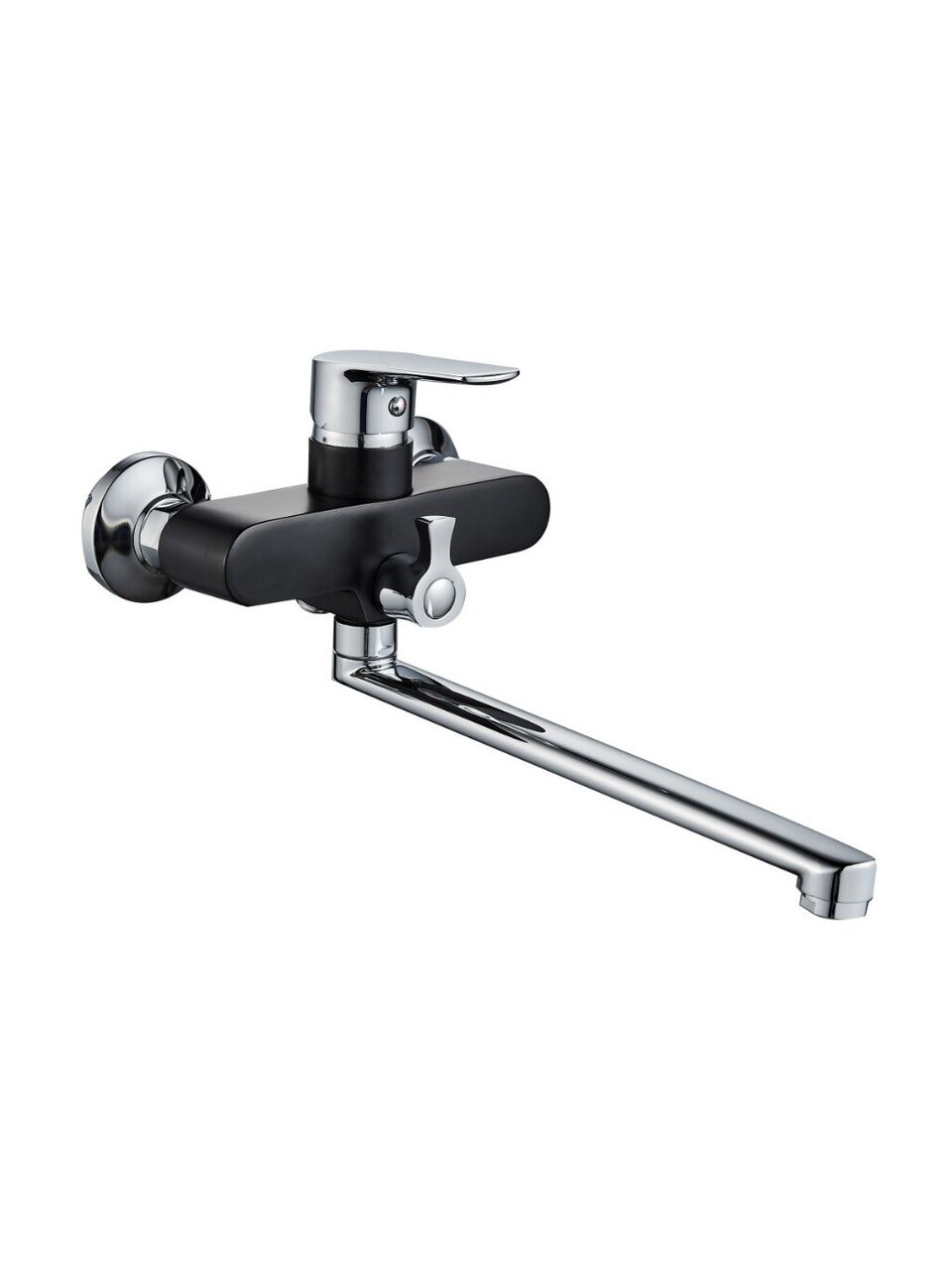 Смеситель для ванны Gota Rocio Catalonia — выбор для тех, кто ищет надежность, современный стиль и удобство управления. Благодаря однорычажной системе и поворотному длинному изливу (межосевое расстояние 150 мм), модель подходит для стандартных и современных ванных комнат. Латунный корпус с глянцевым черным покрытием не только устойчив к коррозии, но и легко очищается от известкового налета, что важно при выборе смесителя для дачи или квартиры.