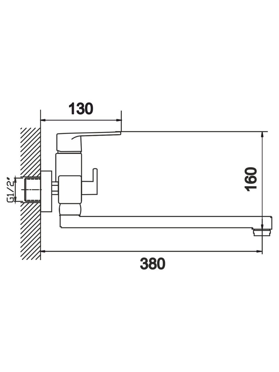 Смеситель устанавливается вертикально на стену с помощью гайки, требуется 2 монтажных отверстия, межосевое расстояние — 150 мм.