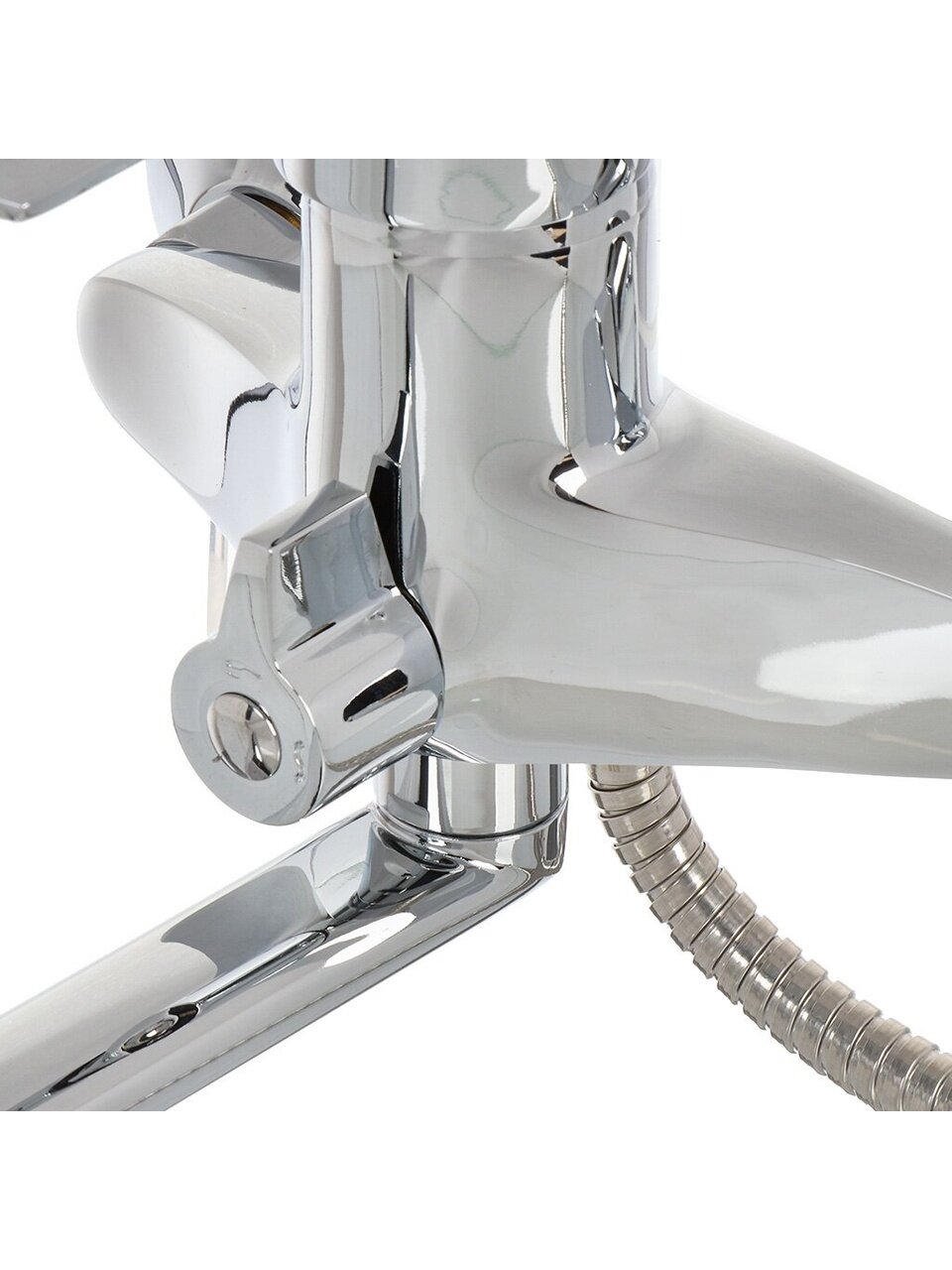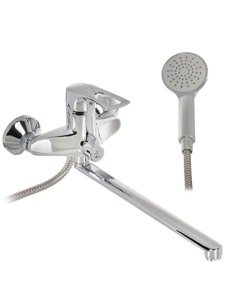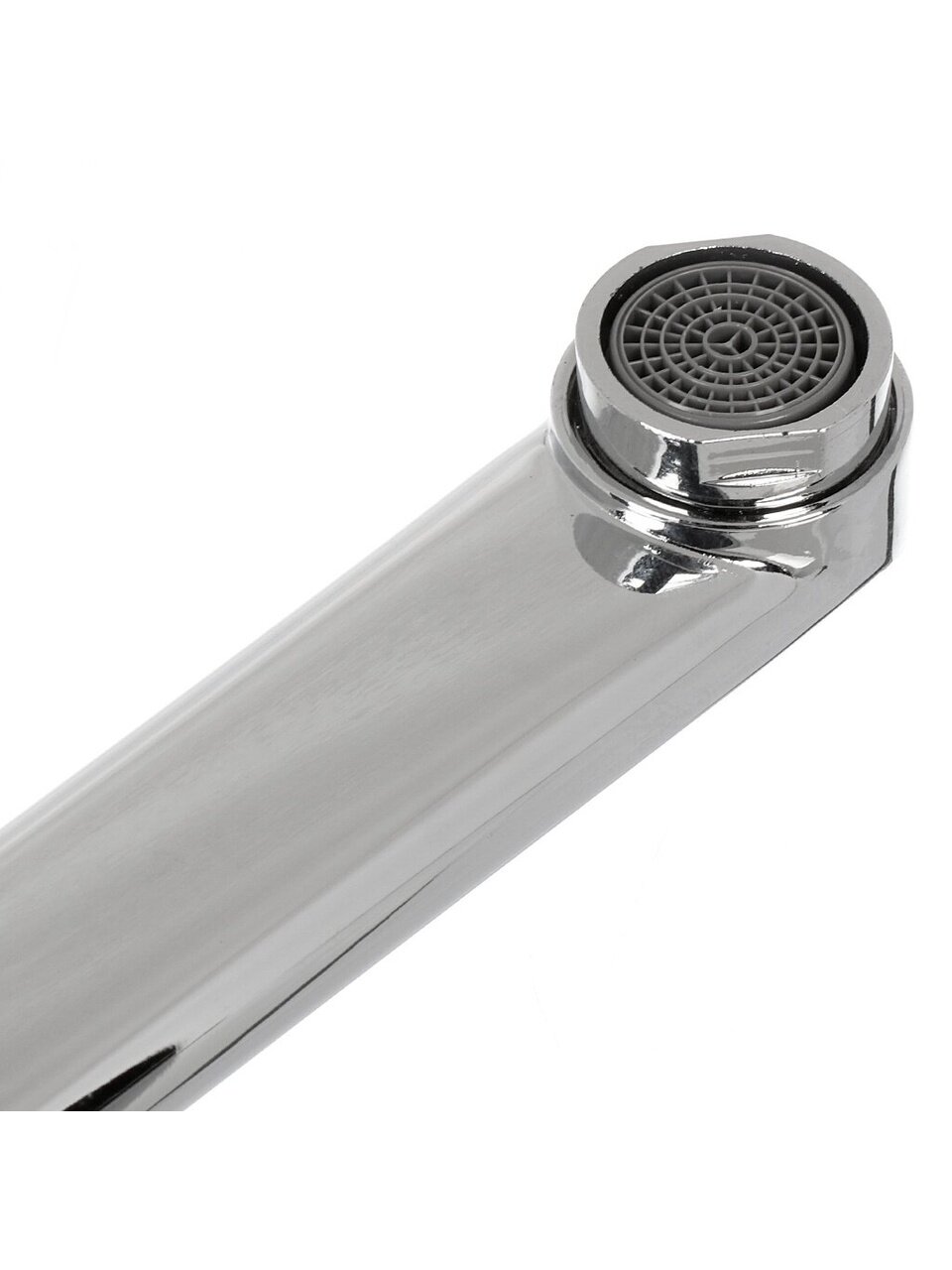 - Длинный поворотный излив 38,3 см из цинкового сплава — удобно для ванны и душа, устойчив к коррозии, хромированная глянцевая поверхность