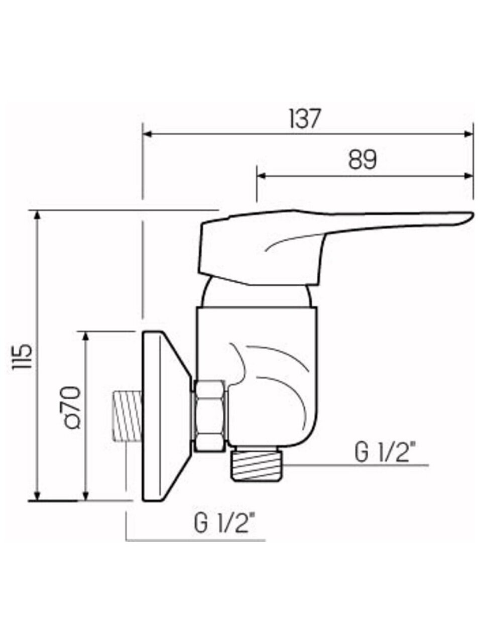 Межосевое расстояние — 150 мм, подключение шланга — 1/2", монтаж — вертикальный, на 2 отверстия. Подходит для большинства типовых душевых систем.