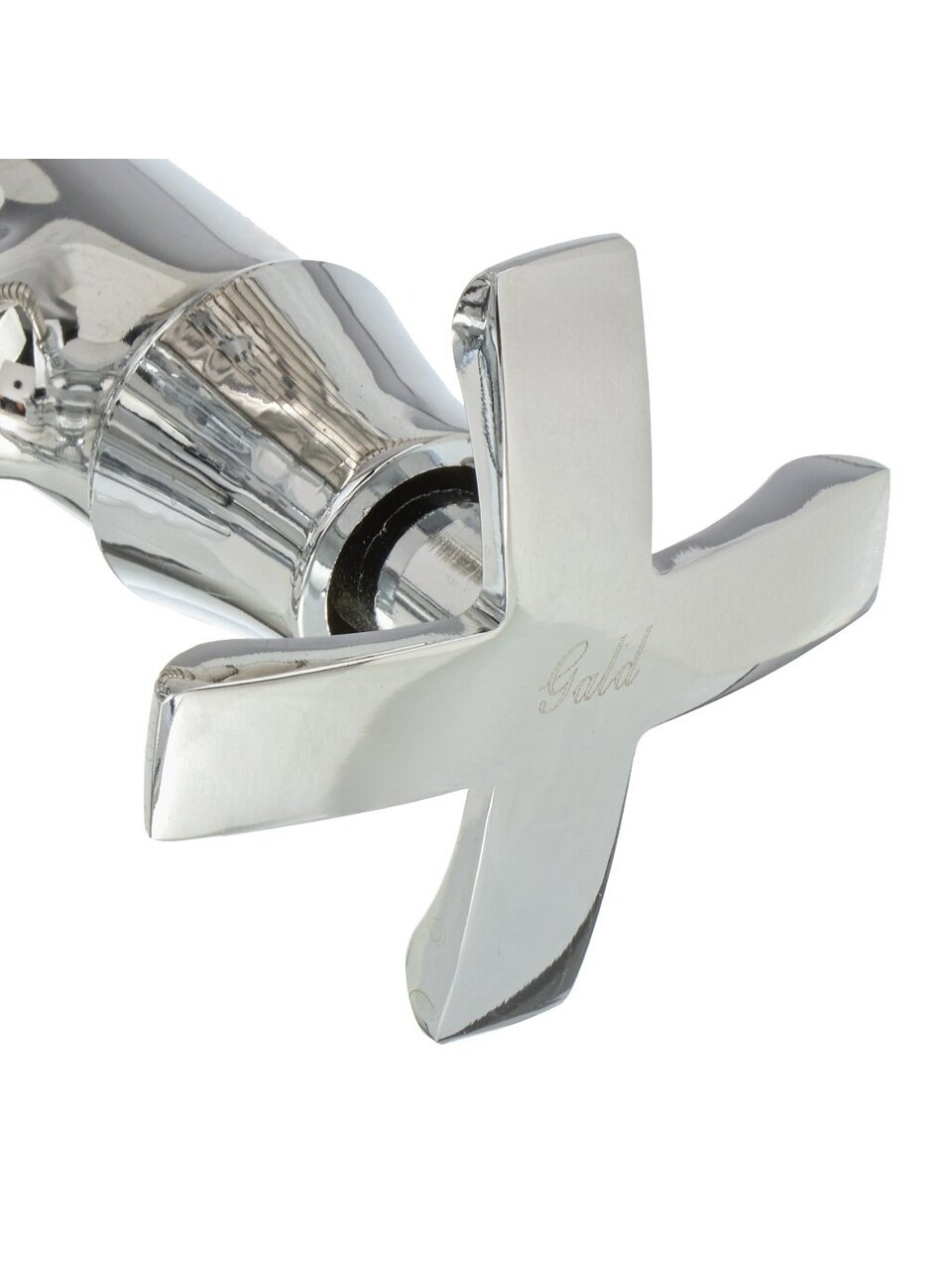 Корпус выполнен из цинкового сплава с глянцевым хромом, смеситель оснащён двухвентильной системой с керамической кран-буксой для плавного и долговечного управления.