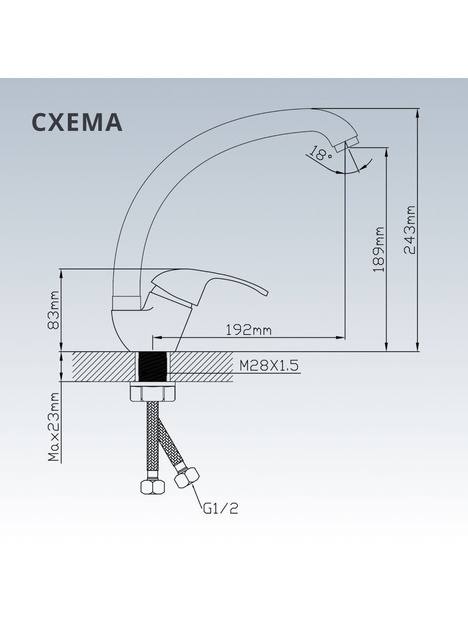 Для установки требуется одно отверстие диаметром 35 мм, стандартная подводка шланга 1/2".