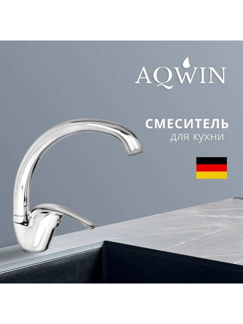 Смеситель для кухни Aqwin A5904: современный дизайн, надежный керамический картридж и хромированная поверхность для долгой службы — выгодное решение для вашей кухни