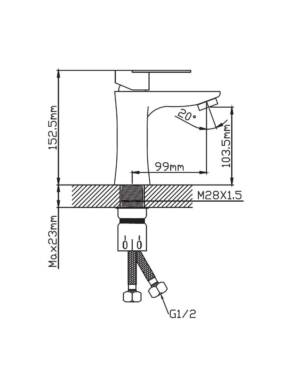 Смеситель монтируется горизонтально в одно отверстие диаметром 35 мм, крепится гайкой, подходит стандартная подводка 1/2". В комплекте — гибкая подводка для быстрой установки.