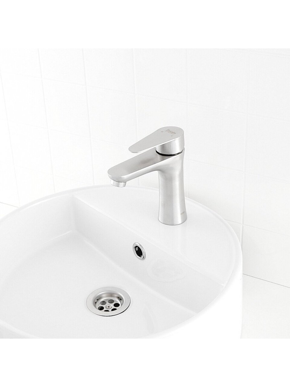 Смеситель для раковины Potato P10310S с коротким изливом — компактное решение для ванной: нержавеющая сталь, плавный рычаг, монтаж за 15 минут.