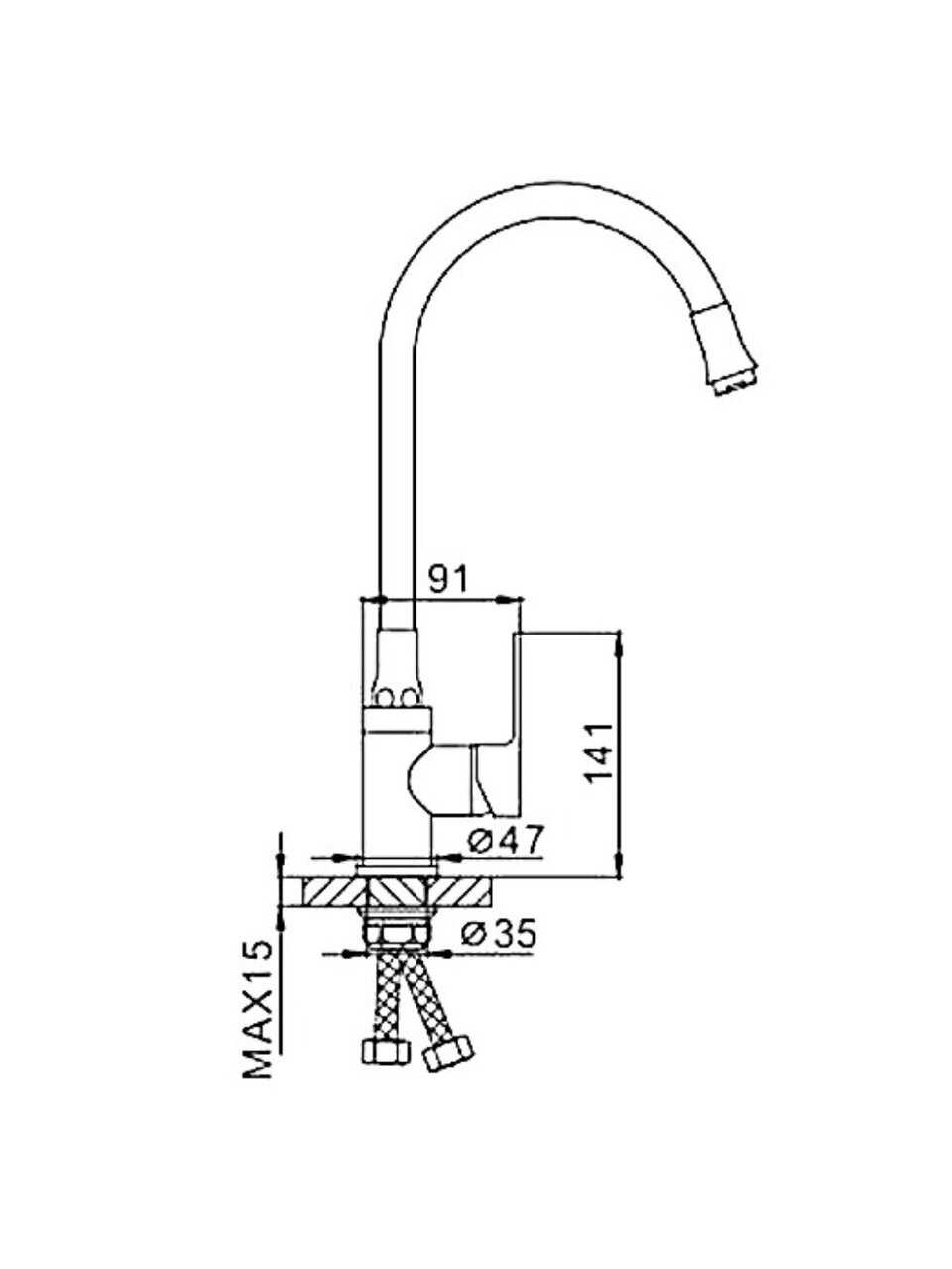 Для установки смесителя требуется одно отверстие диаметром 47 мм. Крепление осуществляется на шпильку, стандарт подключения — 1/2".