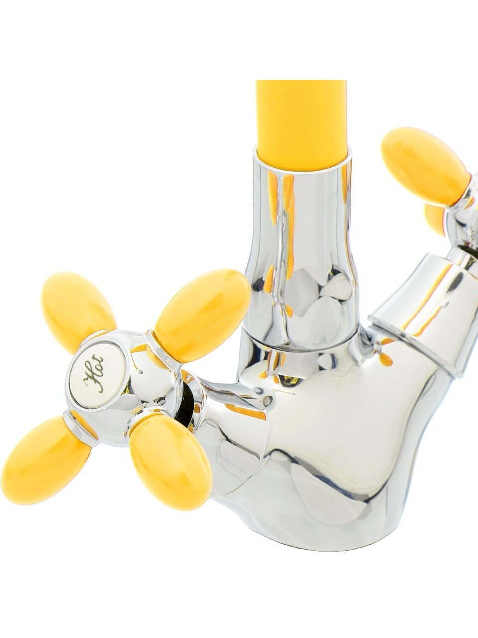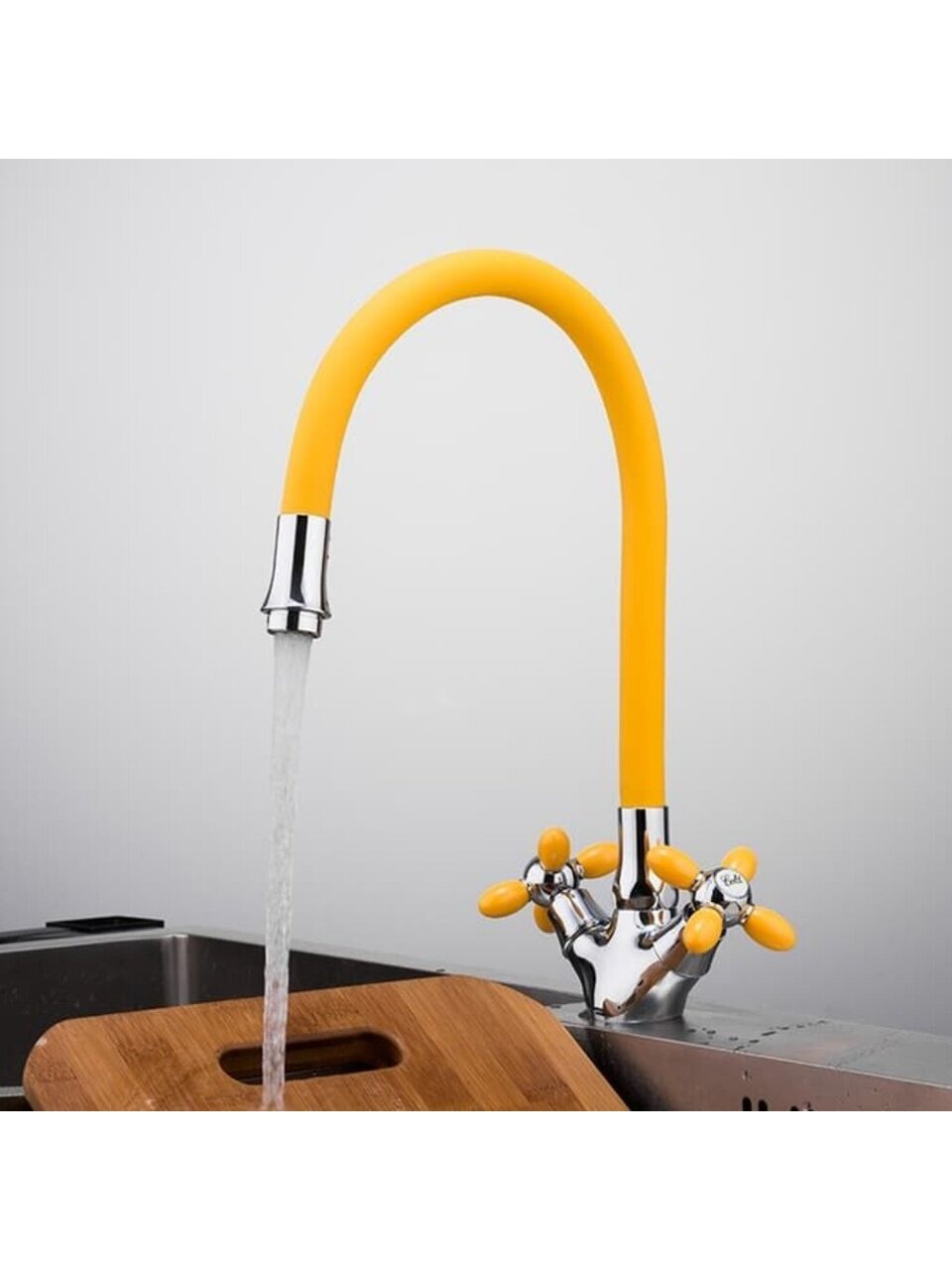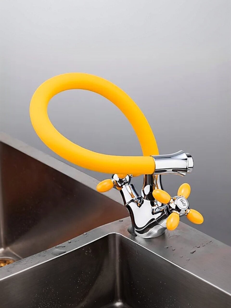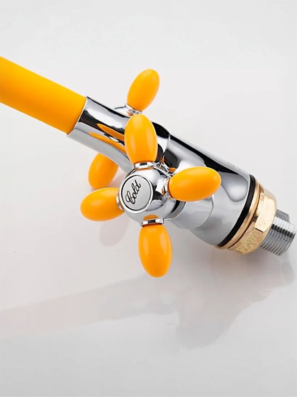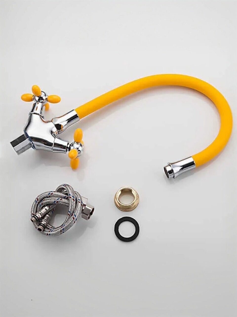 Смеситель для кухни Frud R44127-9: гибкий излив 49 см, стильный желтый цвет, простая установка и экономия воды — решение для удобства и яркого интерьера.