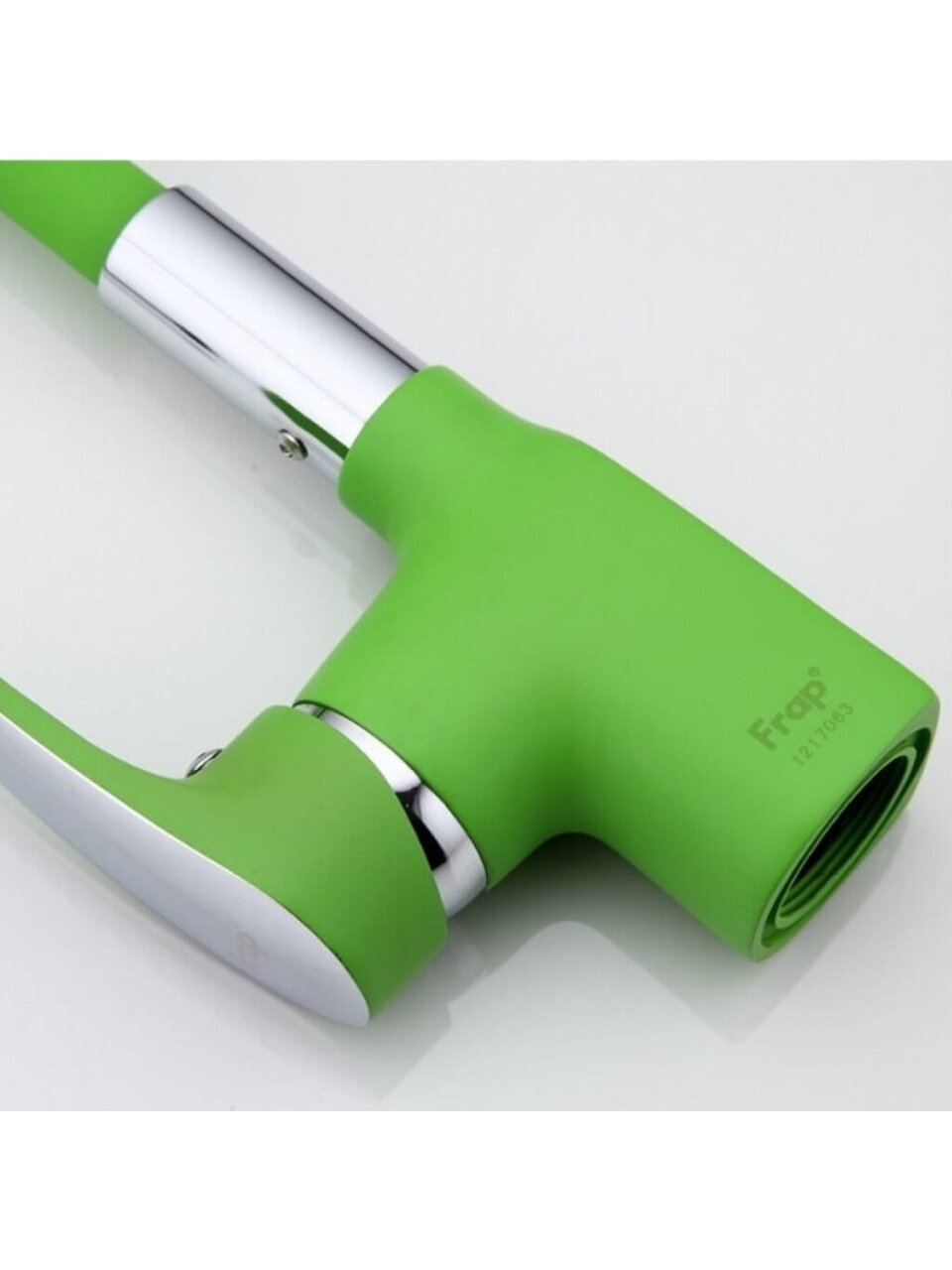 Если вы ищете, какой смеситель лучше выбрать для кухни с современным интерьером, обратите внимание на стильный зеленый цвет и глянцевую поверхность — они станут ярким акцентом и подчеркнут индивидуальность пространства. В отличие от моделей с пластиковым корпусом, латунный смеситель Frap не боится высоких температур и агрессивных моющих средств.