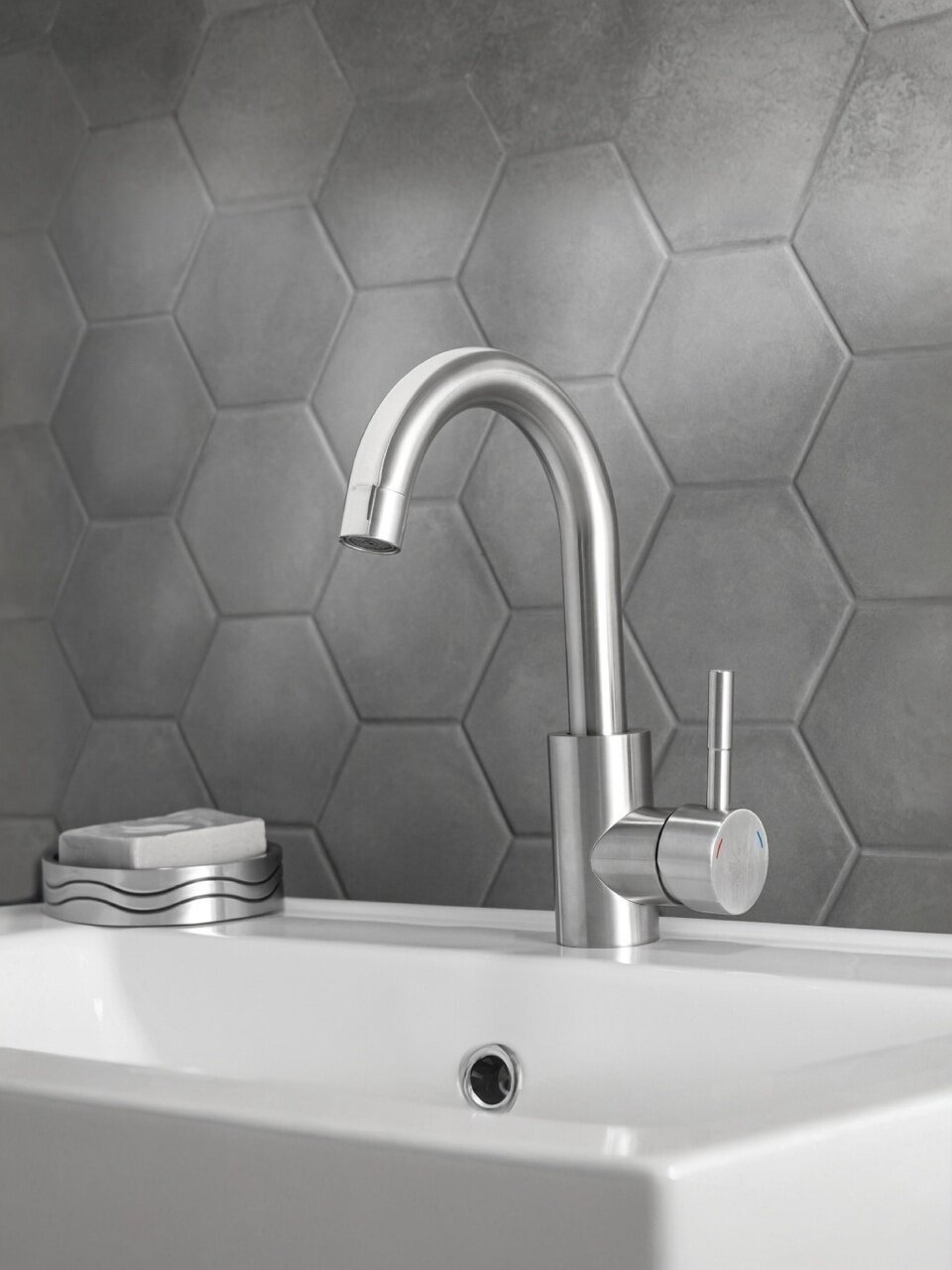 Чем отличается этот смеситель от аналогов? В отличие от моделей с пластиковым корпусом или коротким изливом, РМС SUS124-001F-1 рассчитан на стандартное монтажное отверстие 35 мм и оснащён гибкой подводкой 1/2". Матовая поверхность не оставляет следов от капель и легко очищается. Если вы ищете, какой смеситель лучше выбрать для умывальника или раковины — обратите внимание на эту модель: она проста в установке и подходит для большинства современных интерьеров.