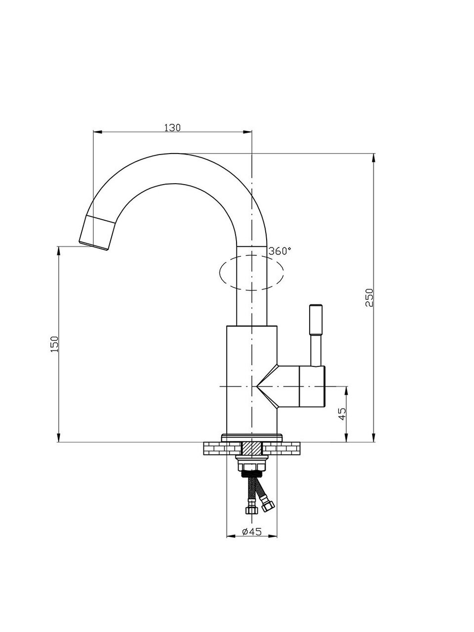 Для установки смесителя РМС SUS124-001F-1 требуется 1 отверстие диаметром 35 мм, стандартная подводка 1/2".