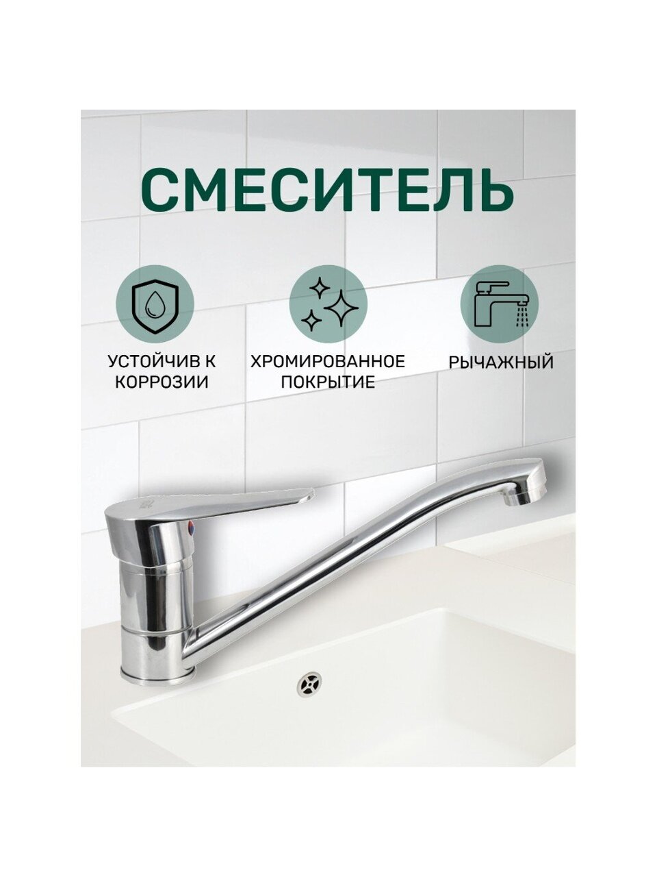 - Универсальность: оптимален для дома, дачи, квартиры — средний излив (20,5 см) для удобства мытья посуды и овощей
