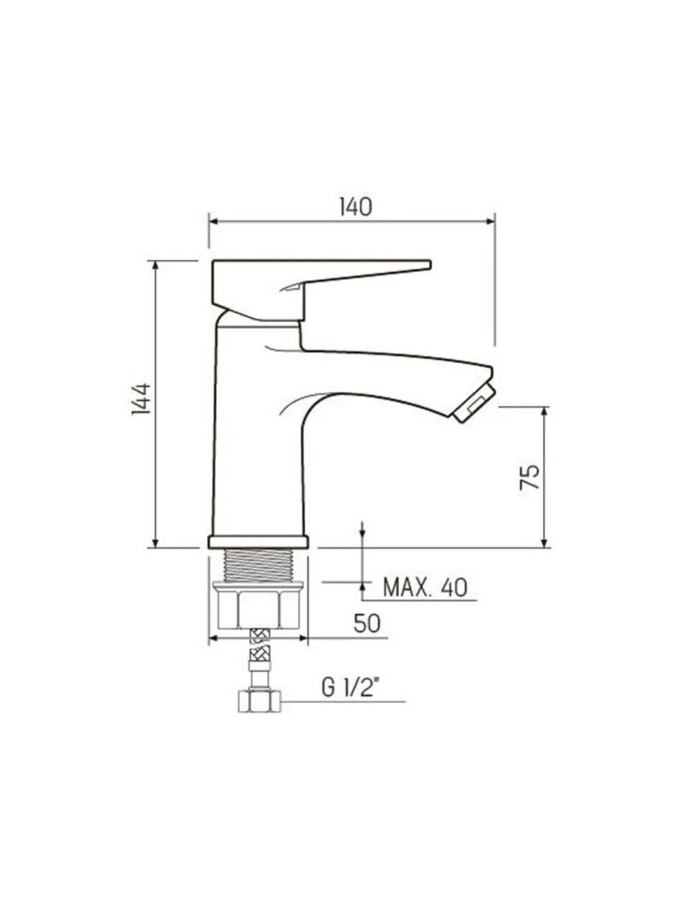 Высота излива — 7,5 см, длина излива — 12 см. Это оптимальный размер для стандартных умывальников и раковин.