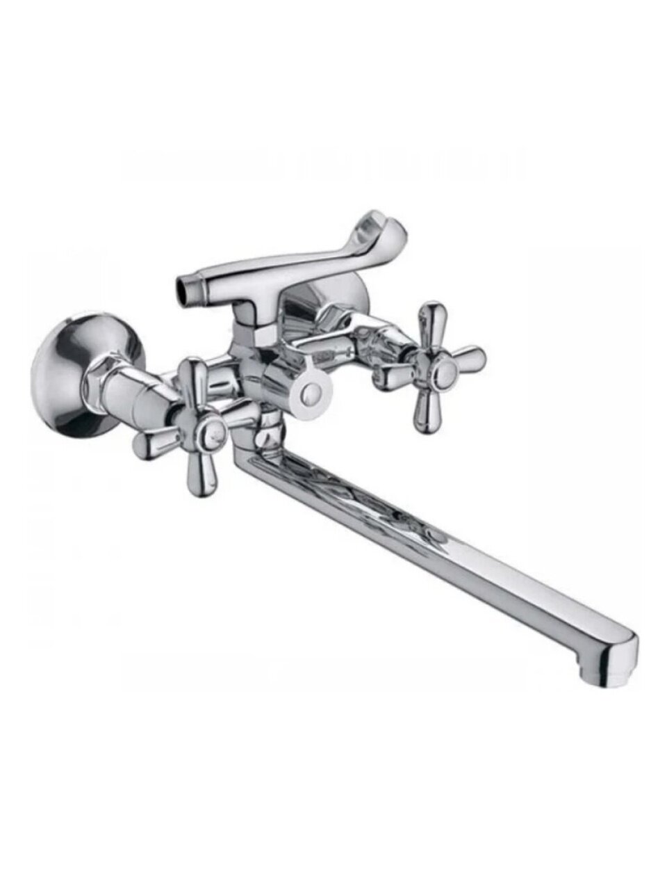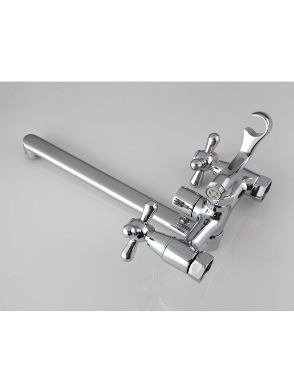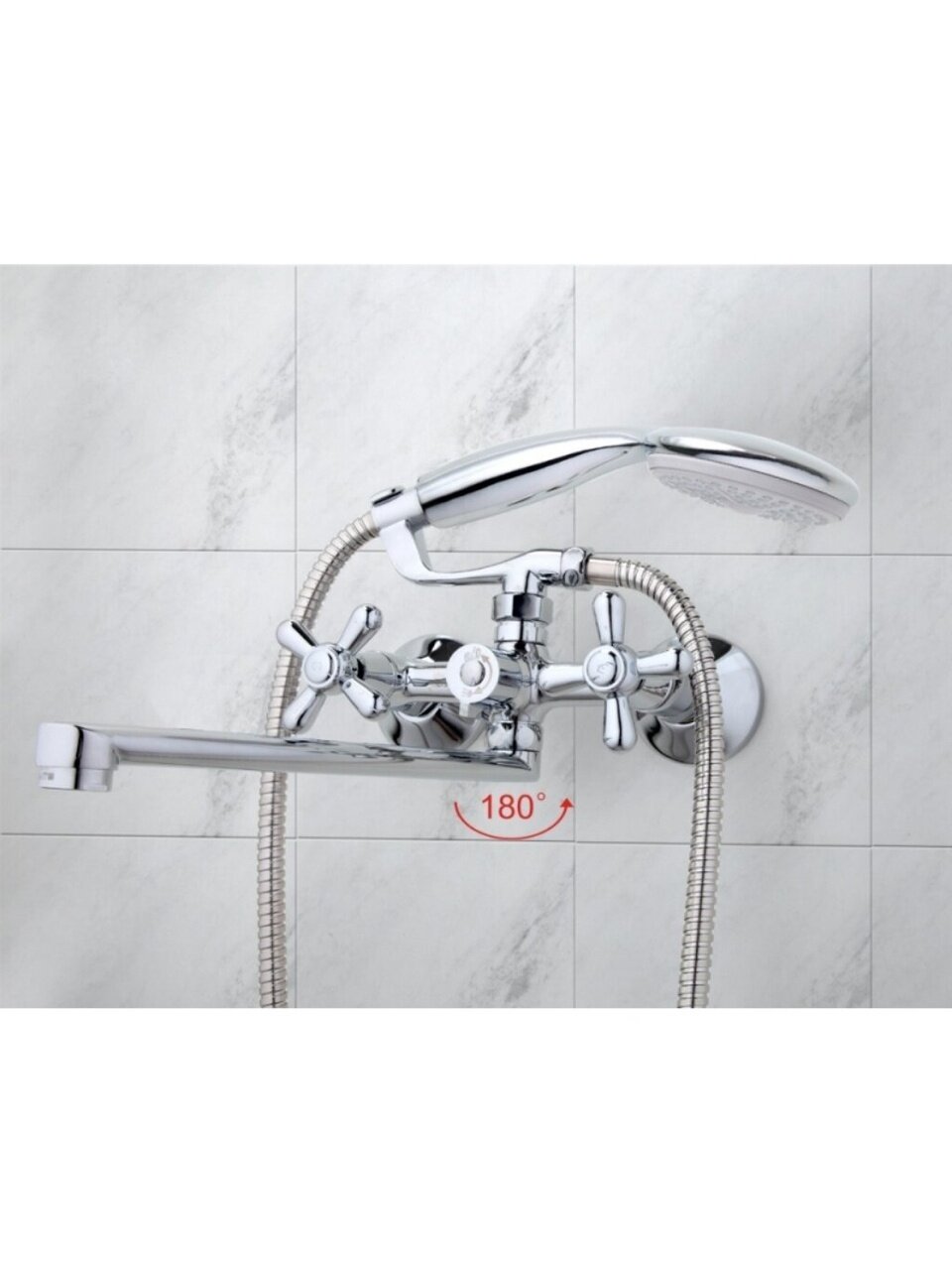 Излив смесителя длинный — 30 см, поворотный, без функции короткого излива, с глянцевой поверхностью и аэратором. Это удобно для наполнения ванны и использования душа.