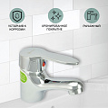 Короткий излив (12 см) идеально подходит для компактных раковин, предотвращает разбрызгивание воды, экономит место и удобен для частого использования на даче, в квартире или гостевом санузле.