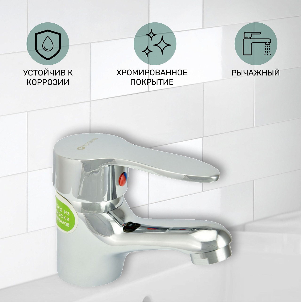 Смеситель для раковины Juguni JGN0710 с коротким изливом — компактное решение для современных ванных, экономия воды и стильный хромированный дизайн за разумную цену.