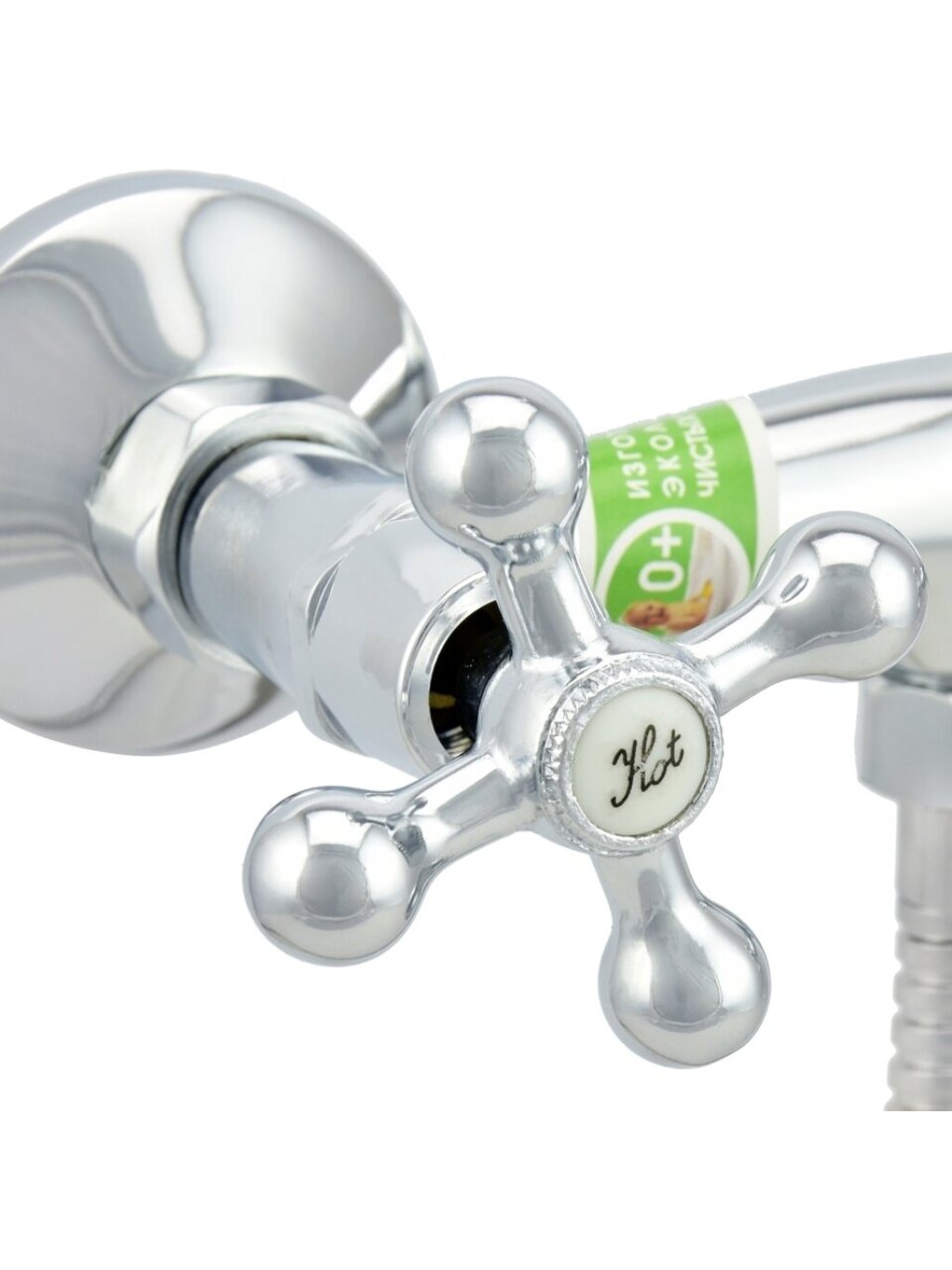 Корпус изготовлен из силумина с глянцевым хромированием, что обеспечивает защиту от коррозии и долговечность даже при интенсивном использовании. Керамическая кран-букса гарантирует плавную работу и долгий срок службы.