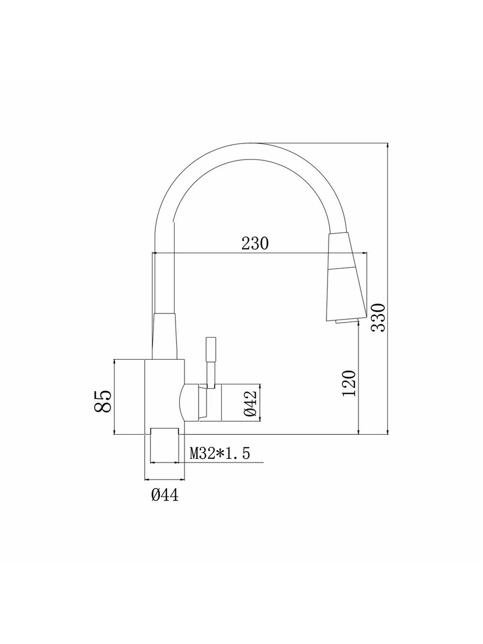 - Гибкий излив 33 см — удобно мыть посуду и наполнять высокую посуду, легко менять направление струи