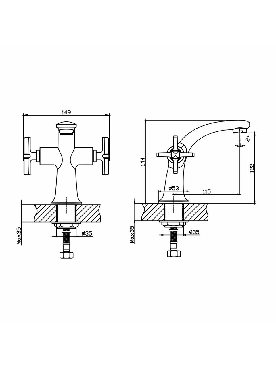 Какой диаметр монтажного отверстия нужен для смесителя Golden Fox Oxford?
