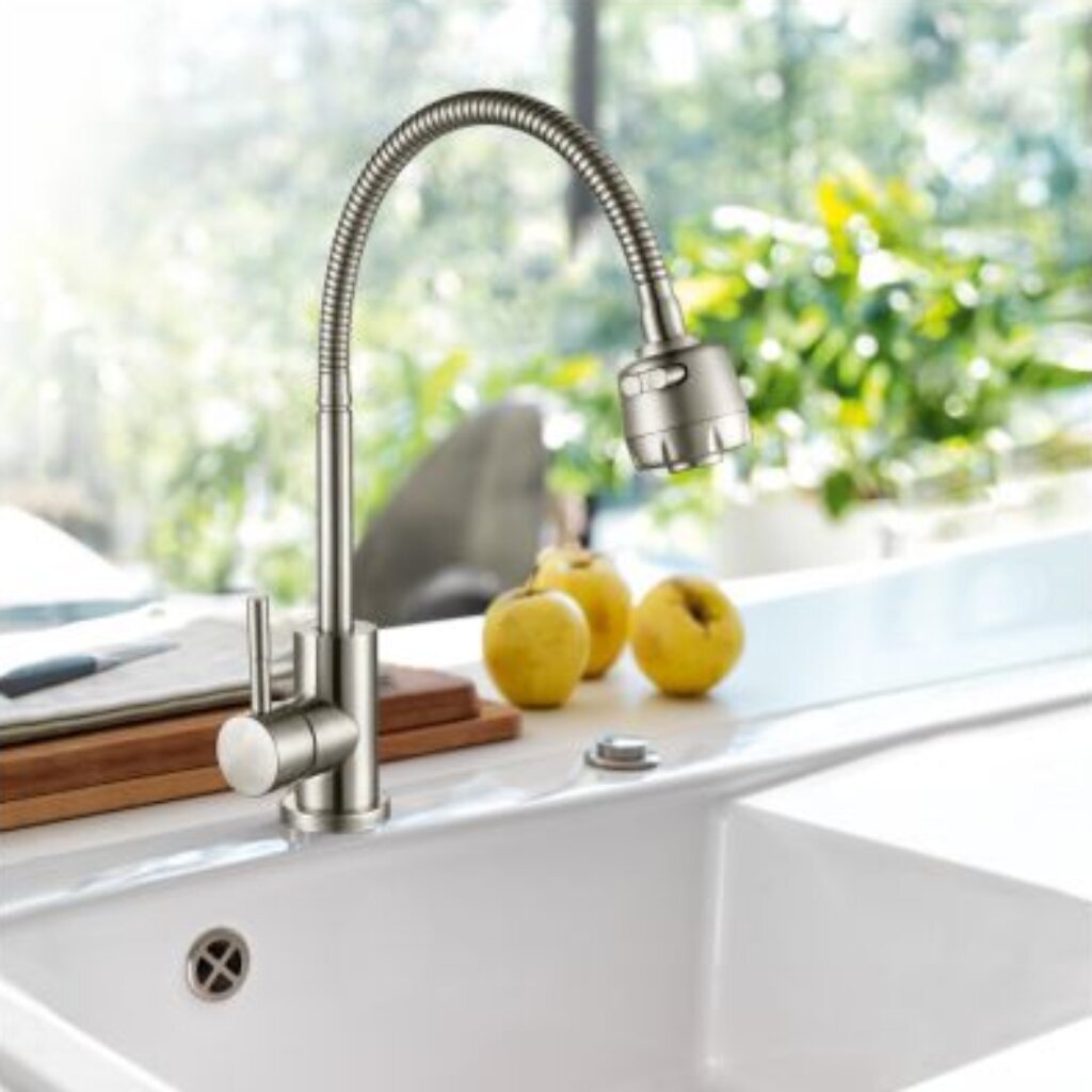 Если вы ищете, какой смеситель для кухни выбрать для частого использования, обратите внимание на эргономичный однорычажный механизм управления. В отличие от пластиковых моделей, этот вариант не подвержен растрескиванию и сохраняет эстетичный вид благодаря матовой поверхности. Как использовать смеситель с гибким изливом? Просто поверните его в нужном направлении — это удобно для раковин любой формы. Подходит ли для дачи? Да, монтаж прост — требуется только одно отверстие диаметром 45 мм и стандартная подводка 1/2".