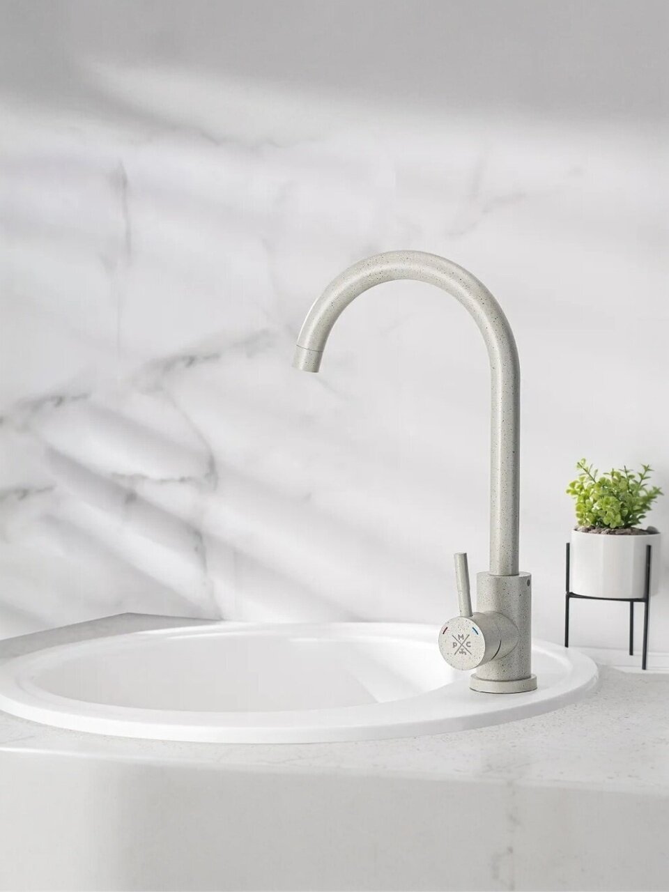 Смеситель с высоким поворотным изливом (24 см высота, 21 см длина) идеально подходит для глубокой мойки и больших кастрюль. Гибкая подводка и стандартный диаметр отверстия 35 мм позволяют быстро установить модель на большинстве кухонных раковин. В отличие от аналогов с пластиковым корпусом, этот смеситель устойчив к механическим повреждениям и не тускнеет со временем. Часто спрашивают, подходит ли он для фильтра — переключателя на фильтр нет, зато аэратор обеспечивает экономию воды и мягкую струю.