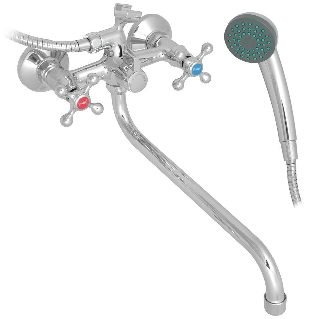 Смеситель для ванны Frap F2208-2: латунный корпус, долговечная керамика, длинный поворотный излив 30 см — оптимальное решение для дома и дачи.