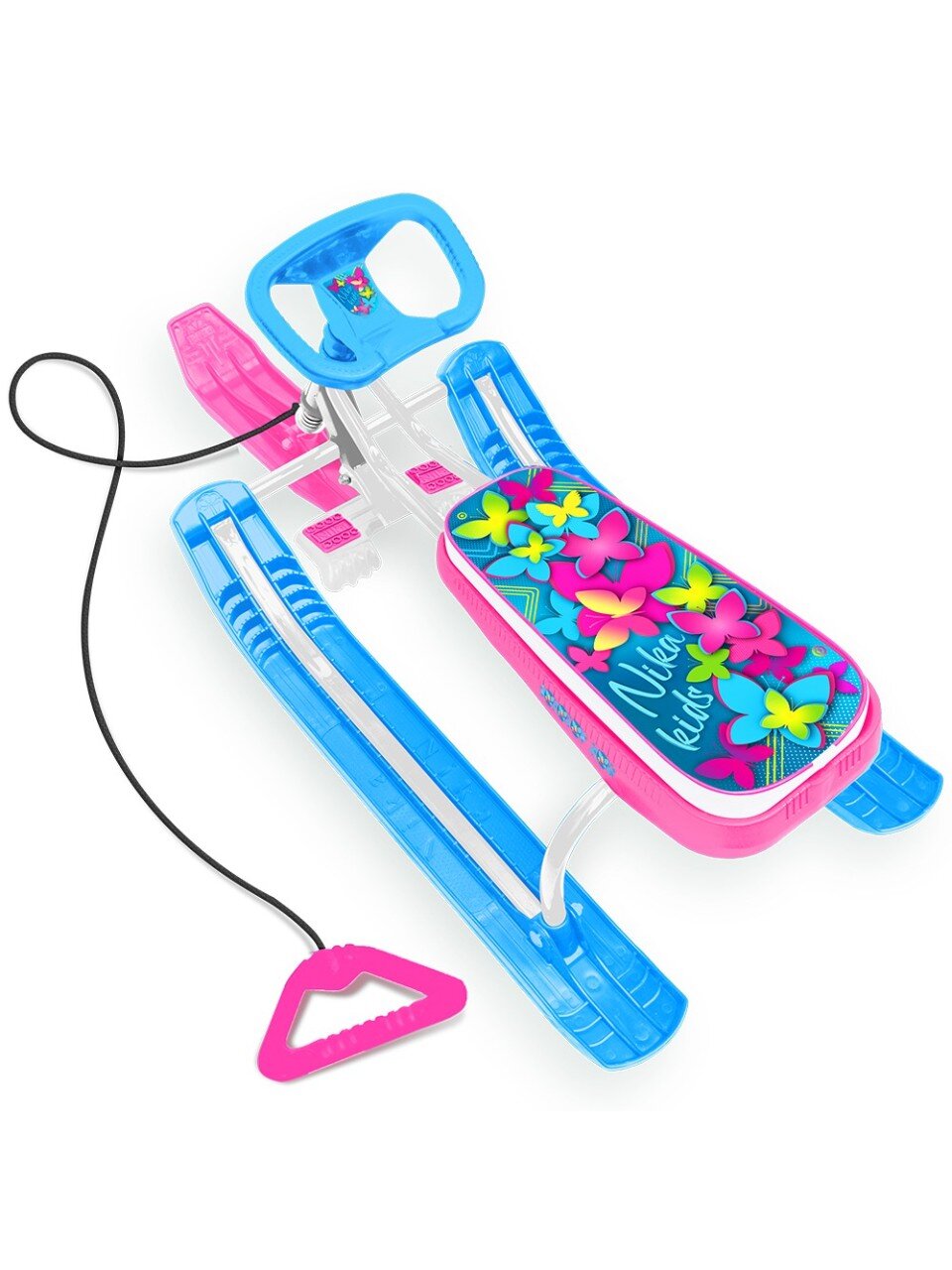 Снегокат Nika Тимка спорт 1+: стильные бабочки 3D, спорт-руль, буксировочный трос, выдерживает до 100 кг — идеальный выбор для зимних прогулок и подарка.