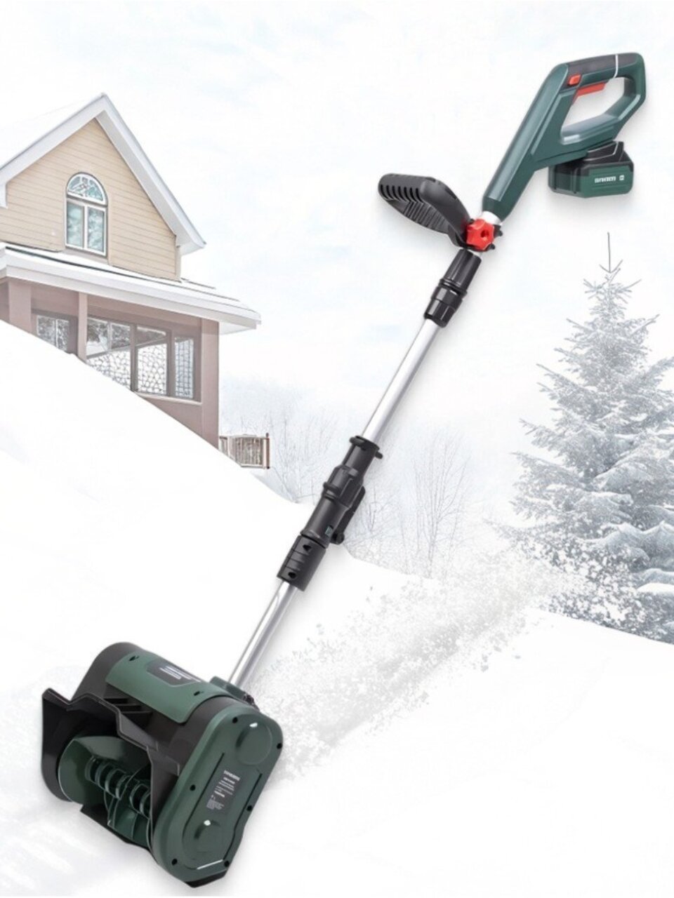 - Снегоуборочная машина работает от аккумулятора, не нужно возиться с топливом и вдыхать выхлопные газы.