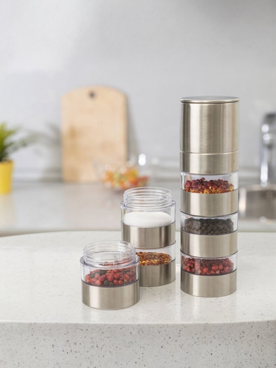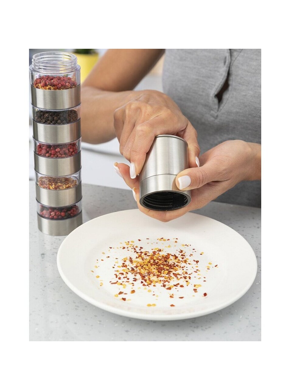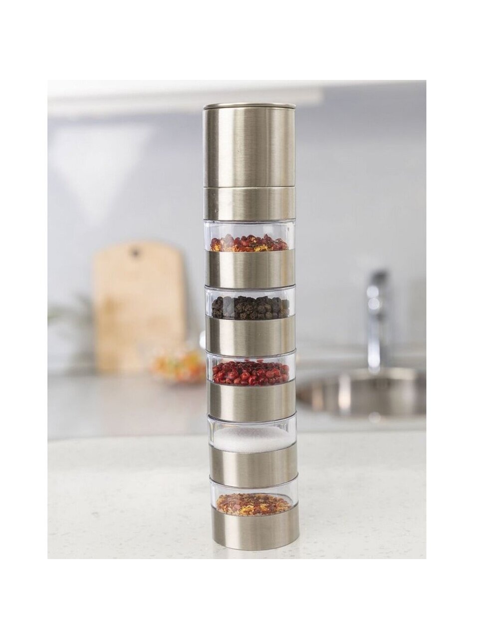 Предпочитаете специи свежего помола? Покупать мельницу для каждой специи затратно? Несколько баночек с приправами занимают много места? Решение есть! Мельница для специй, рассчитанная на 5 видов пряностей, которые вы сможете перемолоть тут же, просто переставив секции местами.