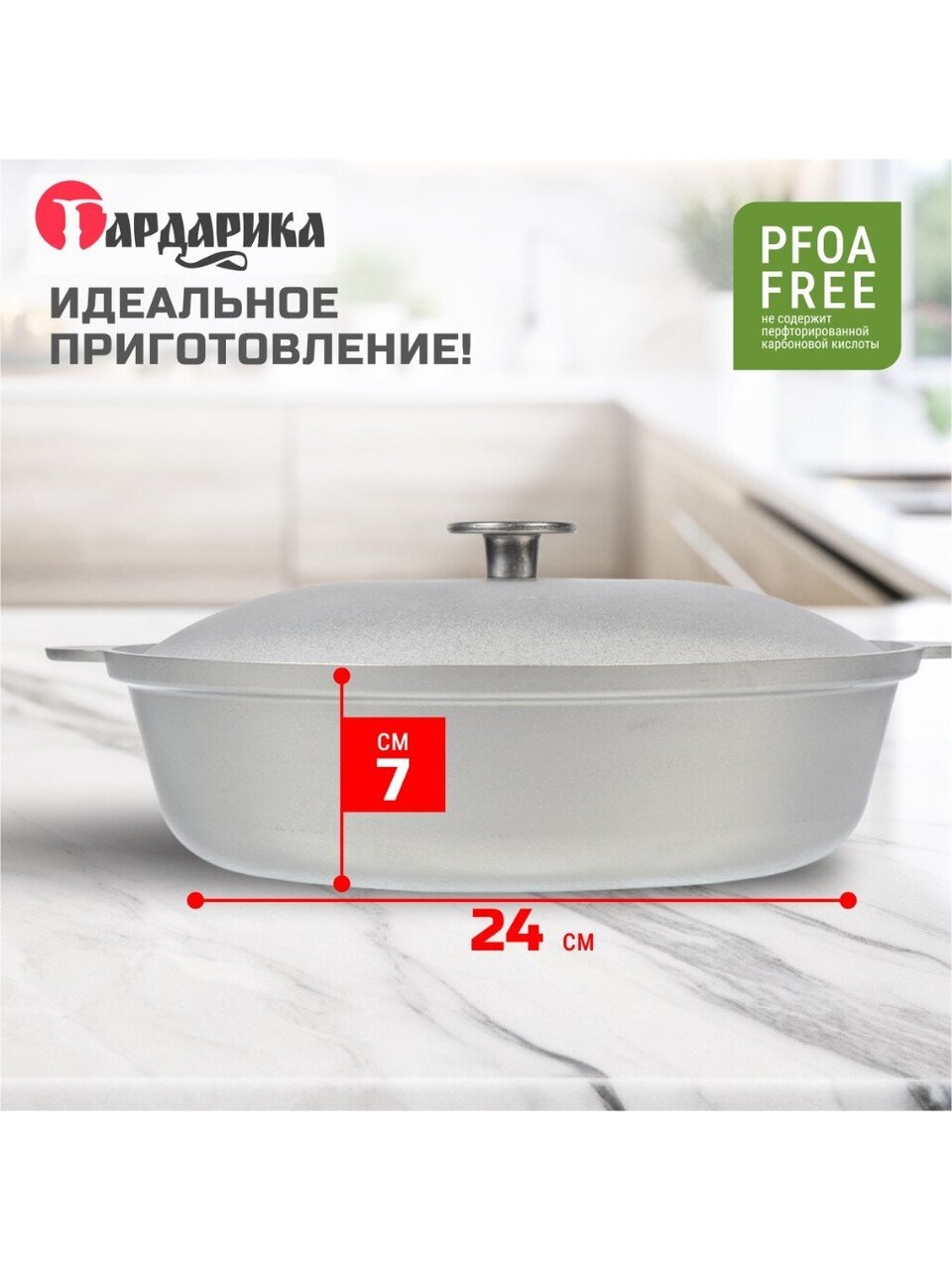 - Изготовленный из алюминия корпус быстро и равномерно нагревается, устойчив к деформации и отлично сохраняет тепло, что способствует качественному и вкусному приготовлению самых сложных блюд.