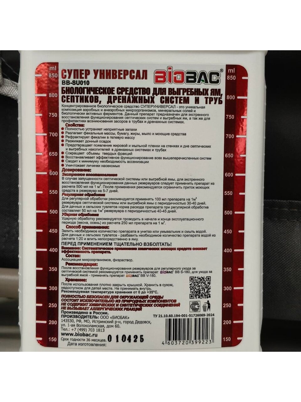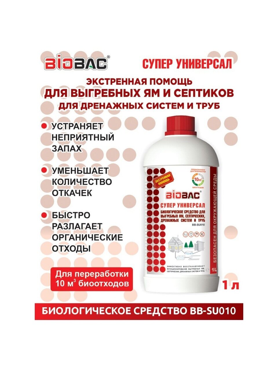 Вы можете приобрести «Биосостав для выгребных ям и септиков, Биобак, 1 л, дренажных систем и труб, BB-SU010» и другие товары в нашем интернет-магазине в Армавире по низким ценам и с бесплатным самовывозом.