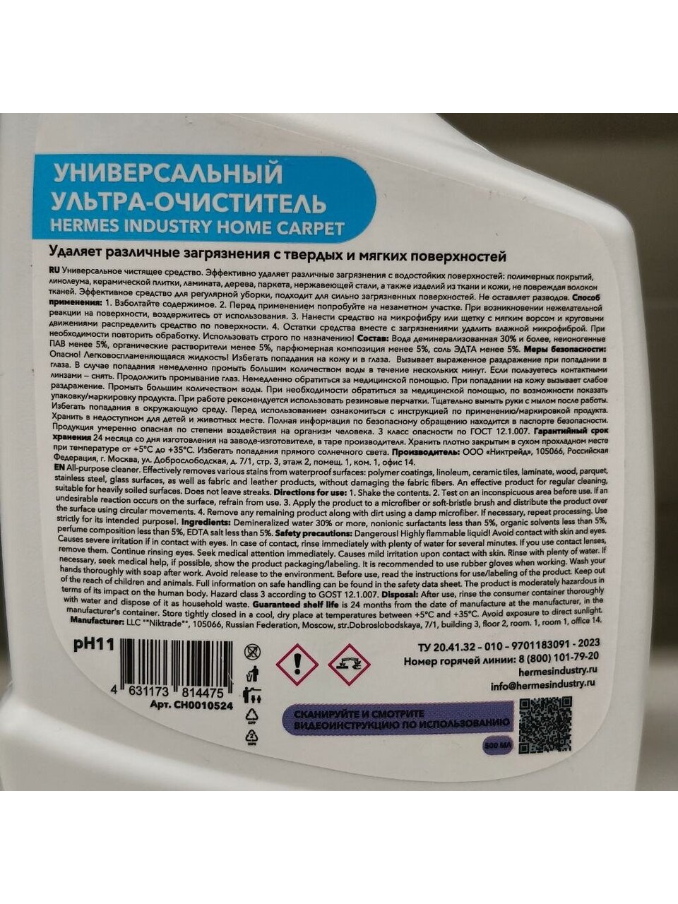 Откройте для себя идеальное решение для чистоты и уюта вашего дома с чистящим средством Hermes Industry Home. Этот спрей, объемом 500 мл, специально разработан для эффективной очистки ковров и обивки мебели. Легкость использования и мощная формула обеспечат безупречный результат.
