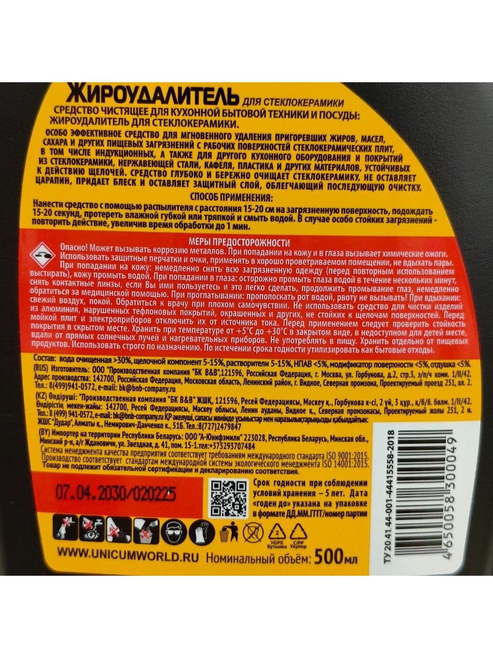 Вы можете приобрести «Чистящее средство для стеклокерамических плит, Unicum, Жироудалитель, спрей, 500 мл» и другие товары в нашем интернет-магазине в Липецке по низким ценам и с бесплатным самовывозом.