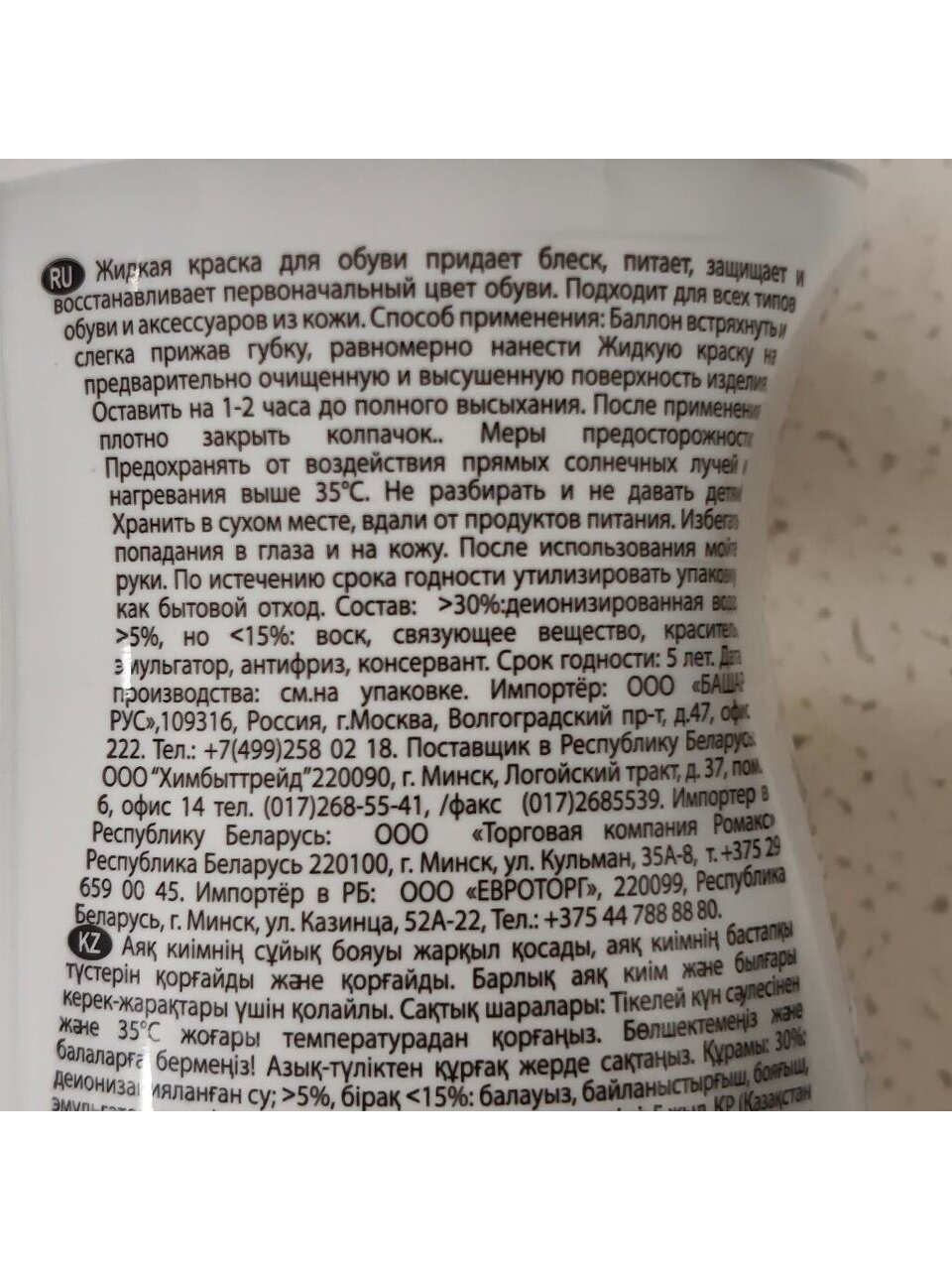 Жидкая крем-краска для спортивной обуви обладает высоко закрашивающей способностью благодаря содержанию концентрированной краски черного цвета. Придает яркость спортивной и повседневной обуви из всех видов кожи, винила и ткани. Эффективно закрашивает потертости и мелкие царапины. Чистит, защищает и ухаживает за изделиями из кожи. Увлажняет, придает коже эластичность и мягкость.
