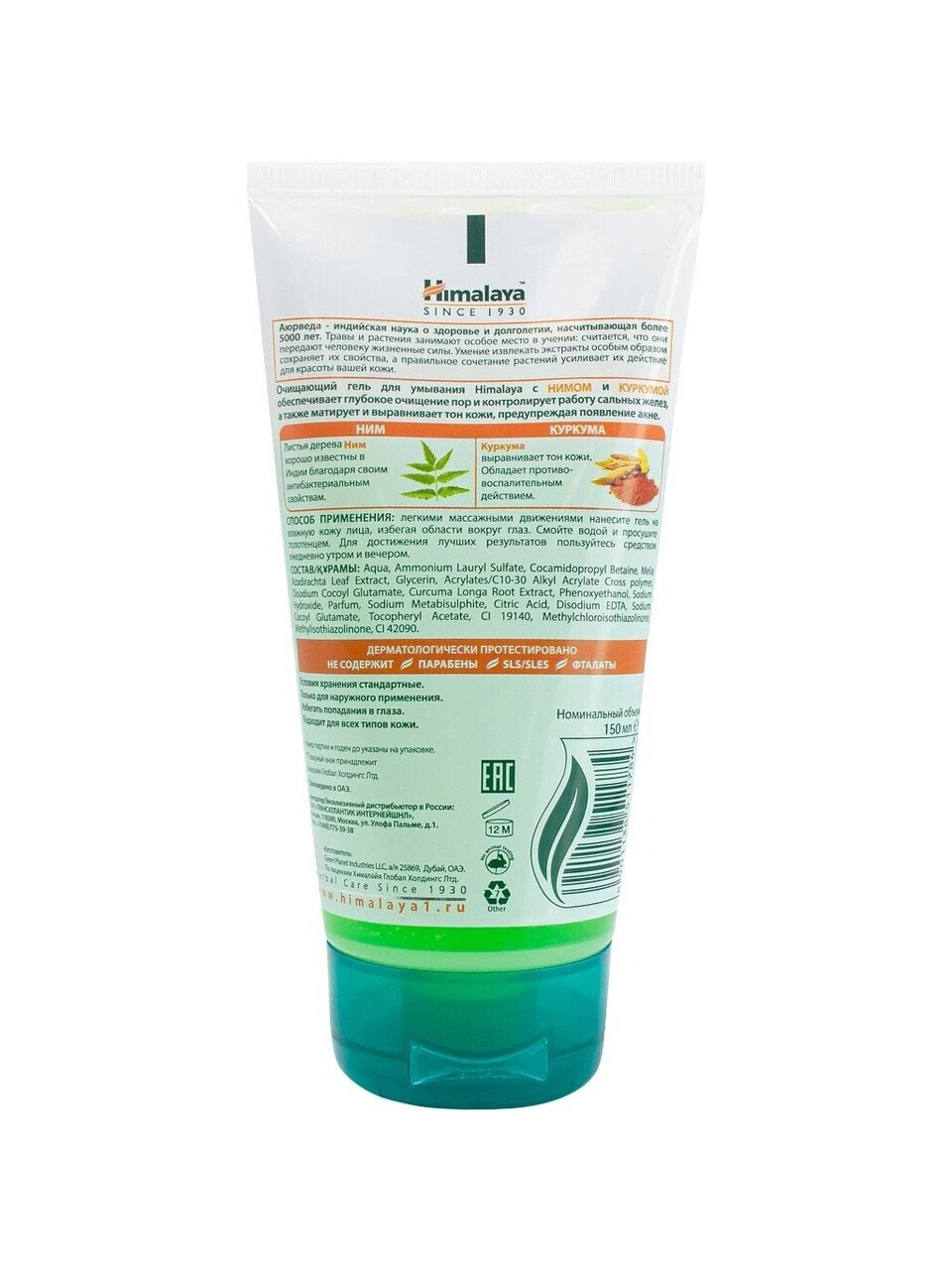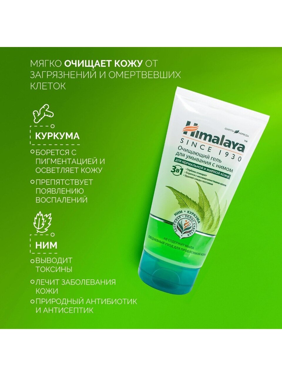 Очищающий гель для умывания Himalaya с нимом - мягкое средство, которое предназначено для тщательного, но бережного очищения кожи от загрязнений и омертвевших клеток без чувства стянутости и сухости после умывания. Оно умеренно пенится. Гель оказывает тонизирующее, омолаживающее и осветляющее действие, не нарушая естественный водный баланс кожи и улучшая цвет лица.