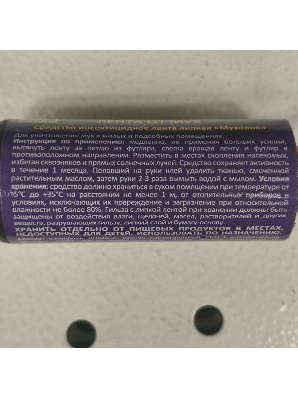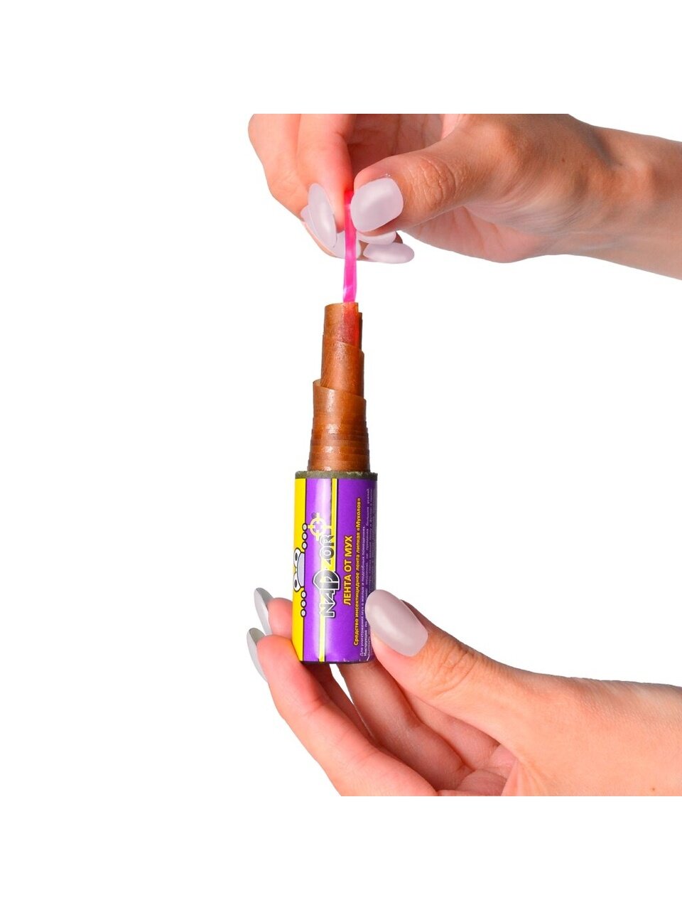 Ловушка для мух представлена в форме картонной гильзы. Внутри свернута в спираль длинная лента со специальным клеящим составом. Пролетающие мимо насекомые задевают ленту и прилипают к ней, не имея ни единого шанса освободиться. Лента абсолютно безопасна для человека и удобна в использовании. В комплекте идет кнопка для удобного крепления.