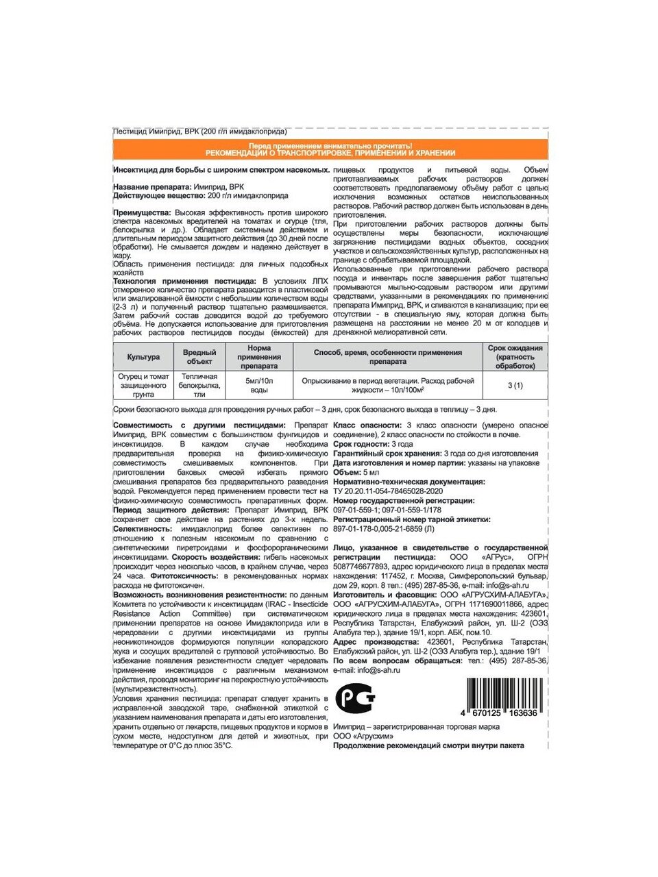 Инсектицид Имиприд, 5 мл, от Агрохим – эффективное средство для защиты овощных культур от тли и белокрылки. Надежное решение для сохранения урожая и здоровья растений. Удобная ампула подходит для быстрого опрыскивания, обеспечивая точное и экономичное использование. Выгода: быстрая и результативная борьба с вредителями, сохранение урожая и экономия времени.