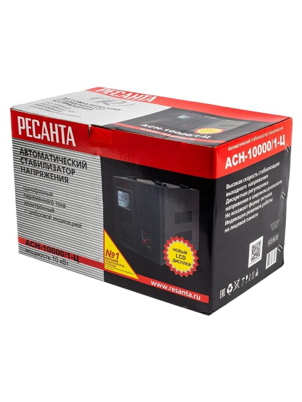 Стабилизатор напряжения Ресанта ACH-10000/1-Ц предназначен для автоматического поддержания в электрической сети заданного напряжения.