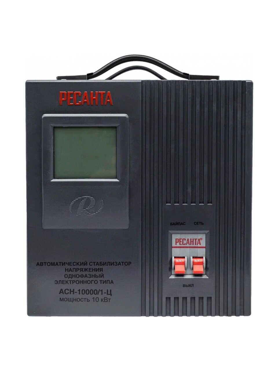 Ресанта ACH-10000/1-Ц — однофазный стабилизатор напряжения электронного типа. Он оснащен микропроцессорным управлением и цифровым индикатором напряжения. За счет использования высококачественных комплектующих прибор исключительно надежен и имеет увеличенный рабочий ресурс.