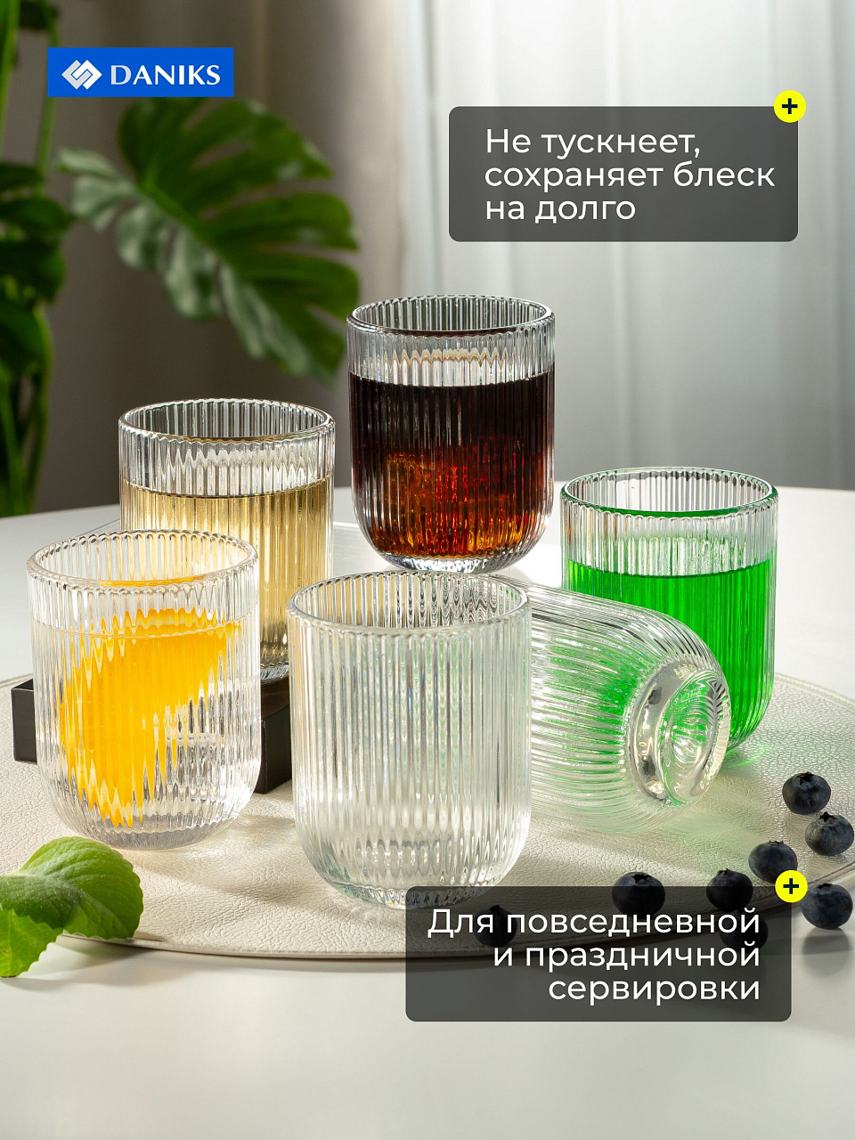 В отличие от аналогов с двойными стенками или трубочками, эти стаканы легче мыть и хранить, а отсутствие лишних деталей снижает риск повреждений. Как использовать набор Daniks Грани? Просто: для напитков, подачи десертов, даже как подарок — благодаря лаконичному дизайну и упаковке. Подходит ли для дачи? Да, прочное стекло и оптимальный объём делают их практичным решением для любого случая.
