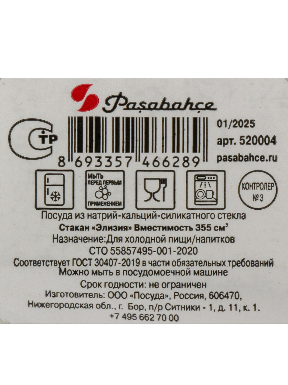 Ст Стакан 355мл Элизия Паша Бахче 520004SLB