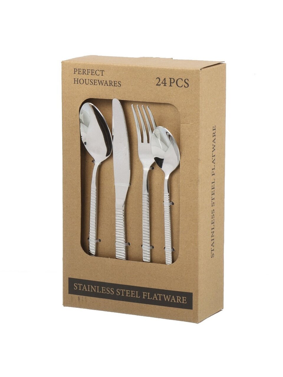 Комплект рассчитан на 6 персон, включает 24 предмета (по 4 прибора на каждого гостя), длина каждого прибора — 24 см.
