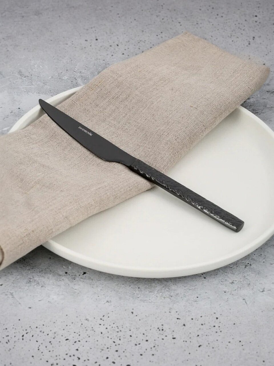 Столовый нож Domenik Rock Black DMC033 из нержавеющей стали — идеальный выбор для стильной сервировки, подарка и ежедневного использования. Прочный, долговечный, с элегантной черной ручкой.