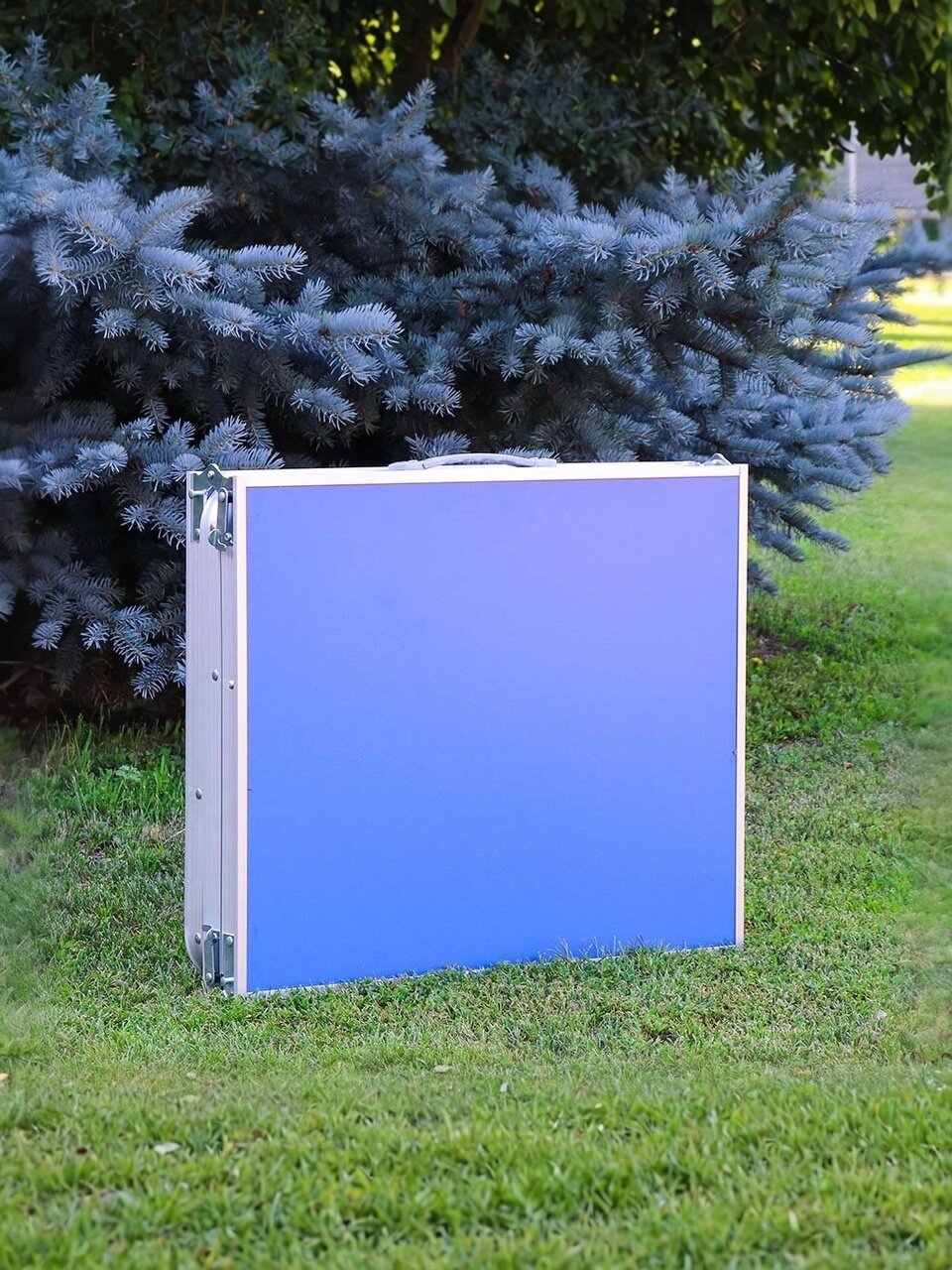 Всего несколько минут потребуется, чтобы собрать стол для вашего мероприятия. Инструменты для сборки стола не требуются. Стол открывается защелкой, затем раскладывается (3 части складные). Ножки стола нужно поднять вверх. Для того чтобы безопасно использовать стол, необходимо зафиксировать поперечные планки ножек и защелку столешницы. В собранном виде стол представляет собой своеобразный чемодан.