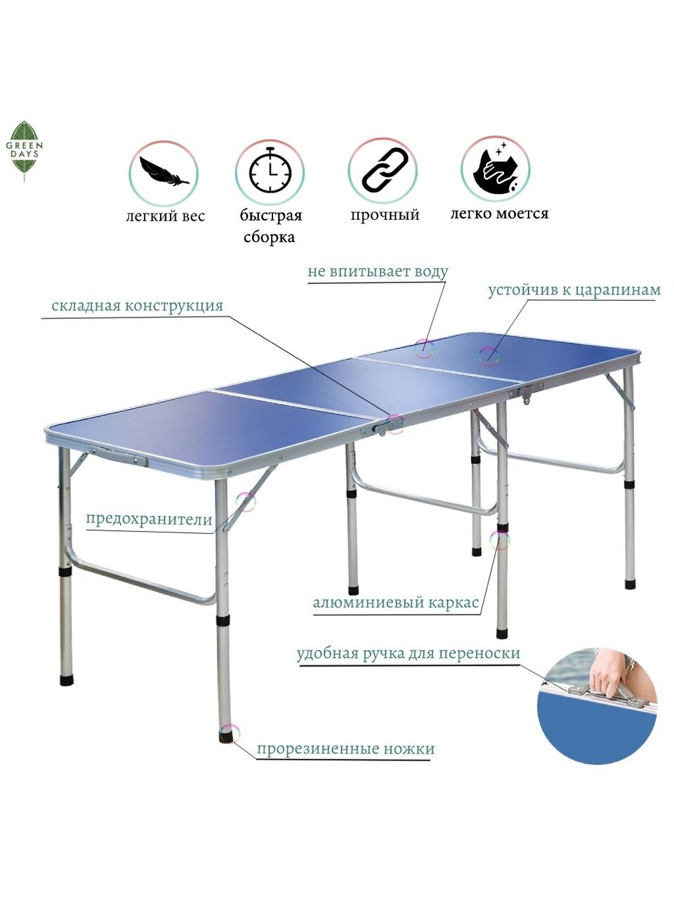 Вы можете приобрести «Стол складной металл, прямоугольный, 150х60х70 см, столешница МДФ, синий, Green Days» и другие товары в нашем интернет-магазине в Железногорске по низким ценам и с бесплатным самовывозом.