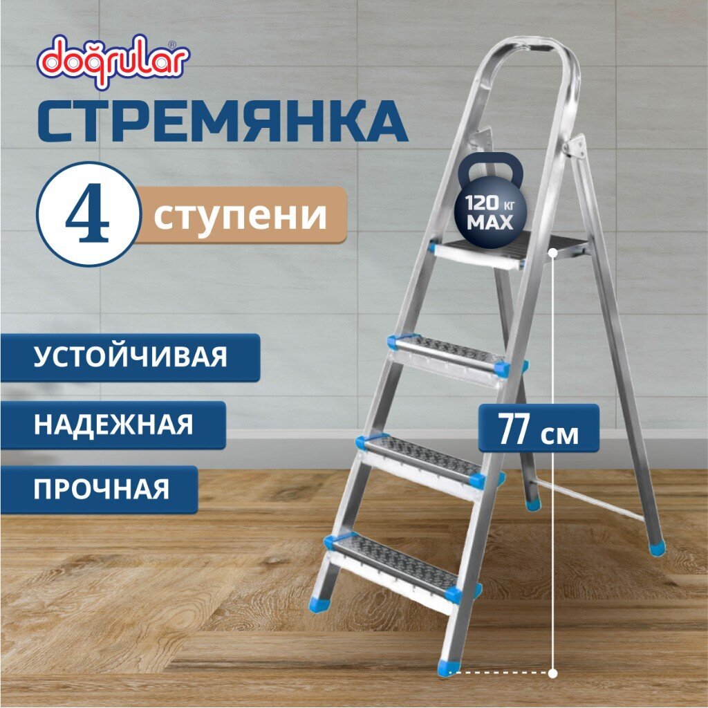 Вы можете приобрести «Стремянка 1 секция, 4 ступени, сталь, 1.32 м, 120 кг, оцинкованная, Dogrular, Ярус, 122204» и другие товары в нашем интернет-магазине в Обнинске по низким ценам и с бесплатным самовывозом.